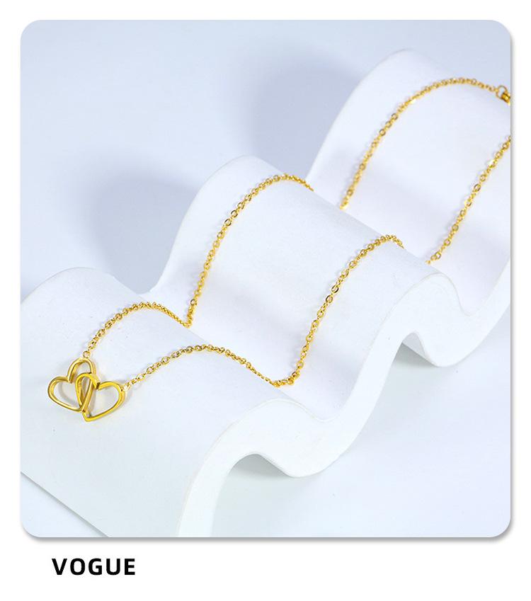 Cadena de clavícula sencilla con doble anilla, hecha de acero de titanio y oro de 18 quilates coreano, resistente a la decoloración, collar de celebridades de Internet, joyería de nicho para mujer