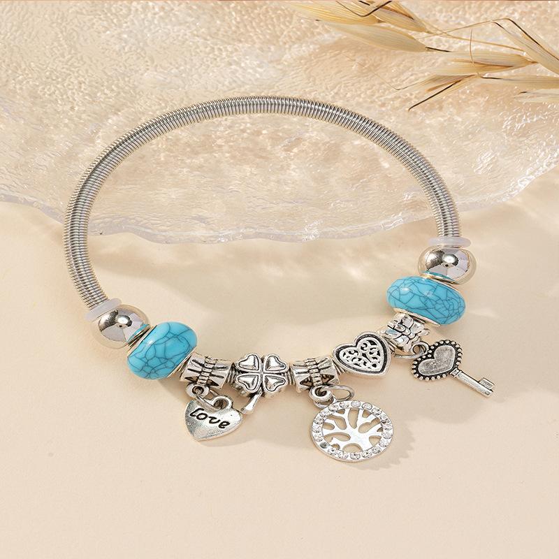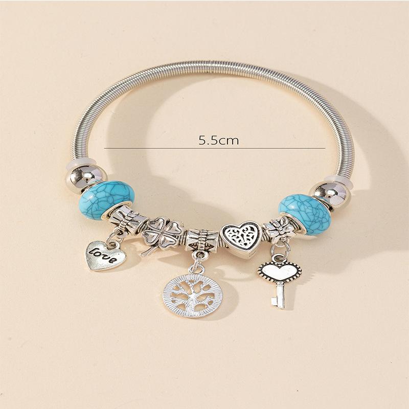 Pulsera Panjia Dora DIY con cuentas transfronterizas, accesorios de trébol de amor, pulsera con colgante de árbol de la vida
