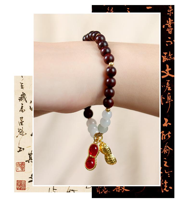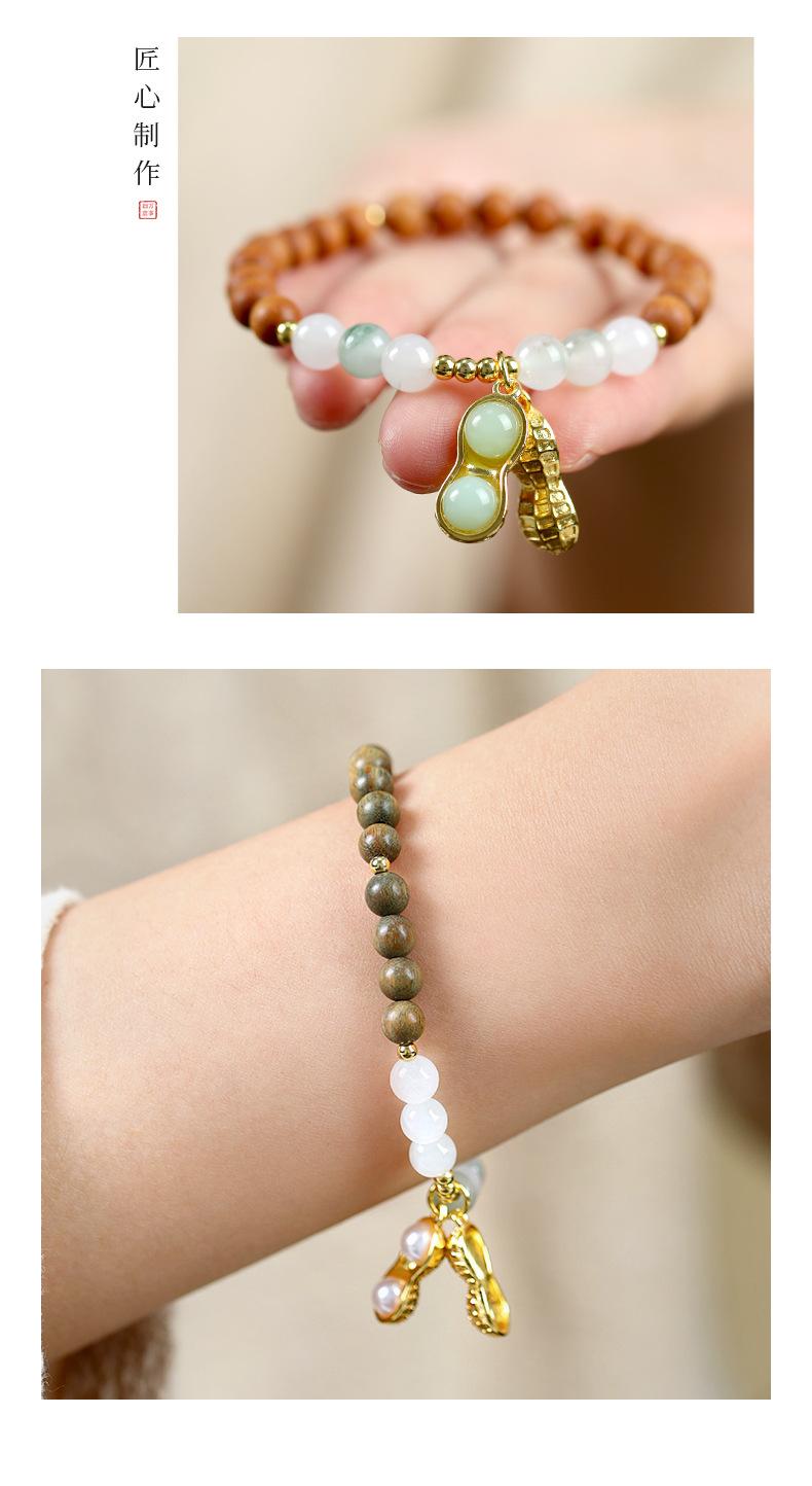 [Buen cacahuete] pulsera de sándalo natural estilo antiguo colgante de cacahuete pulsera de cuentas de Buda pulsera de madera para mujer venta al por mayor