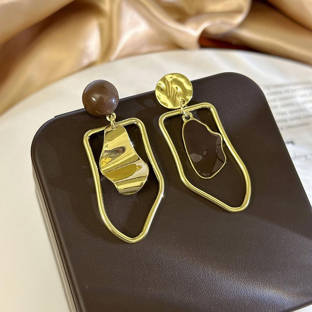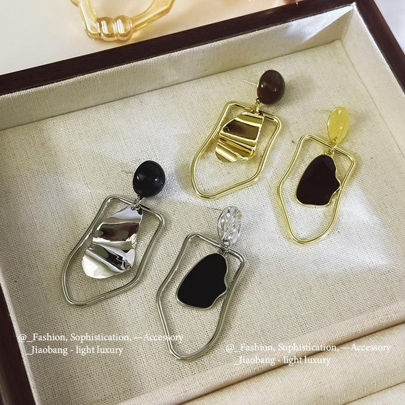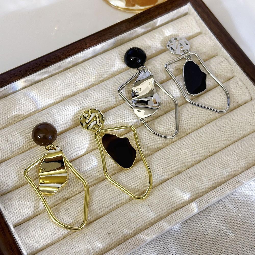 Pendientes huecos con forma de gota de metal antiguo de aguja plateada, elegantes y sencillos, de nicho, de lujo, ligeros y de alta gama para mujer.