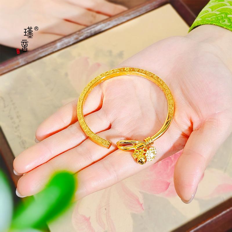 Pulsera Jin Yan Ruyi Yoji de oro brillante de 24 quilates con preservación de color, nueva pulsera china ajustable con apertura para todo tipo de combinaciones para mujer.