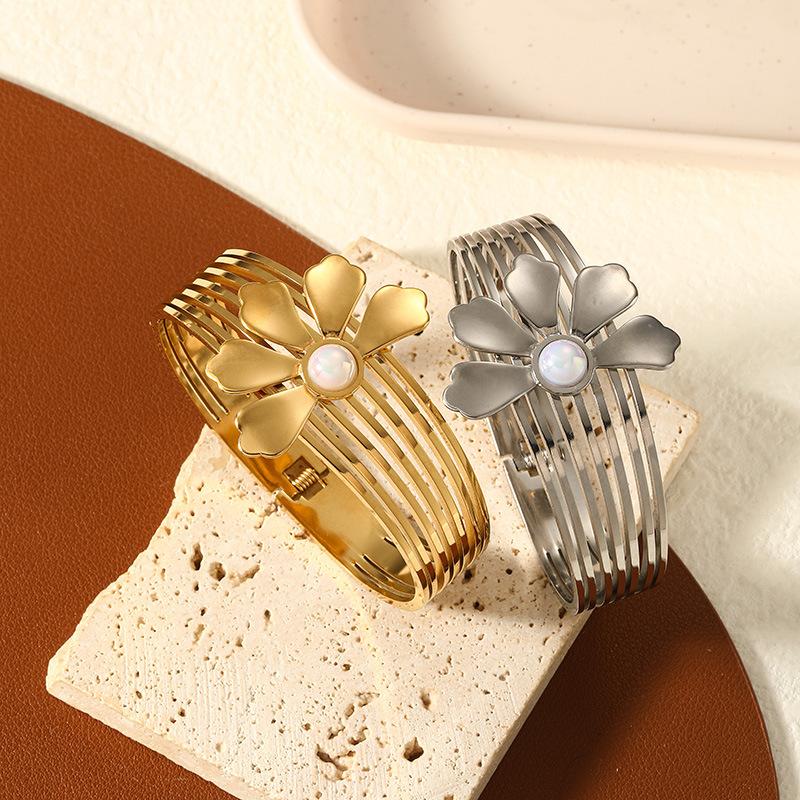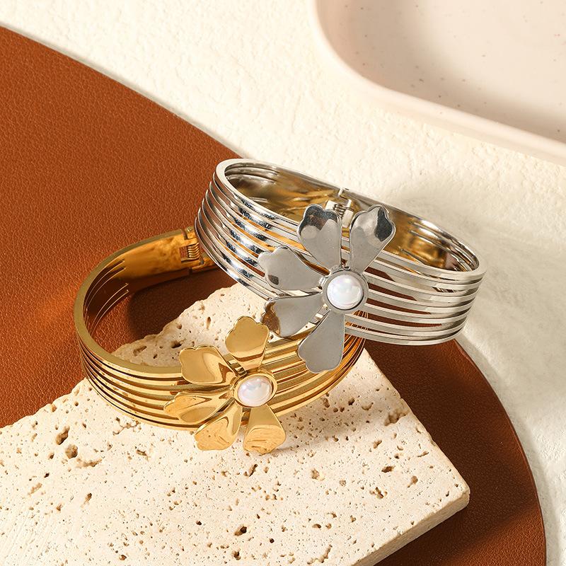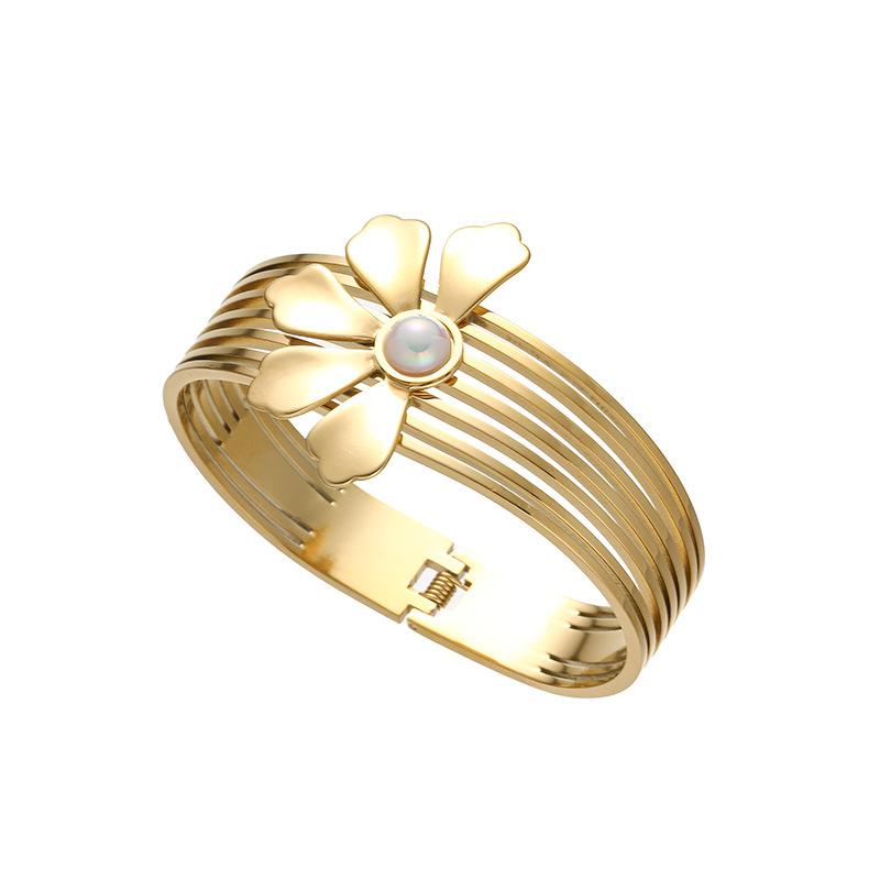 Pulsera de acero de titanio transfronterizo para mujer, nueva pulsera de lujo ligera, resistente a la decoloración, de alta calidad, con diseño de nicho de perlas simple, a la moda.