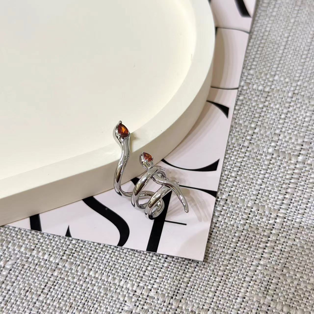 Pendientes de plata con forma de serpiente y clip de hueso para oreja de viento frío para mujer, sin orejas, diseño de nicho, pendientes únicos, venta al por mayor
