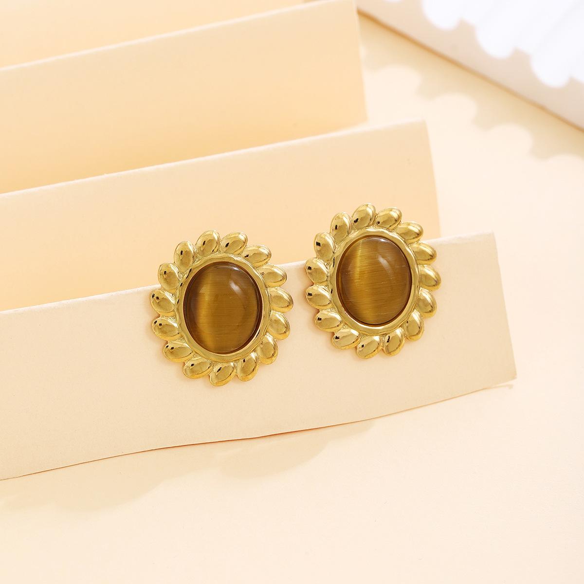 Pendientes de textura de ojo de gato retro de moda europea y americana, ligeros, de lujo, de gran sentido, geométricos, de metal, con diseño de girasol y viento.