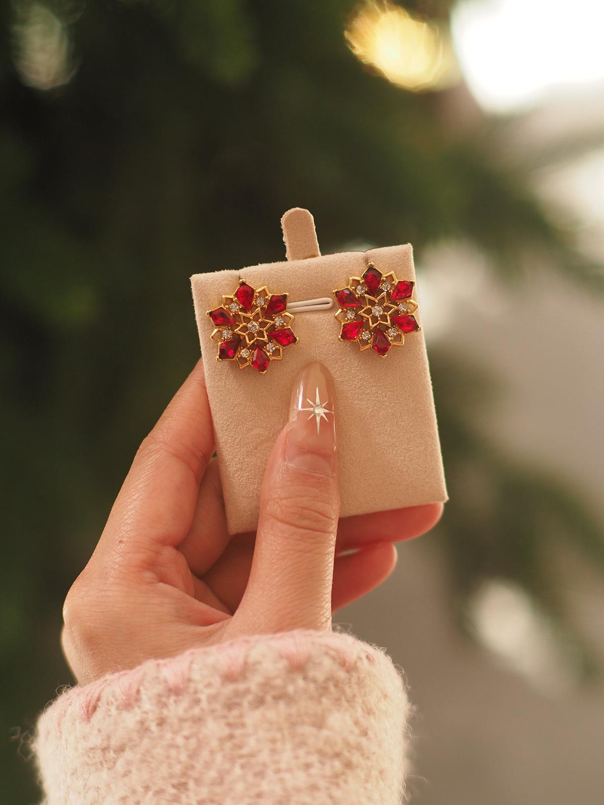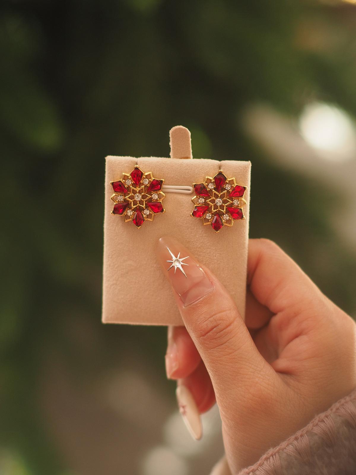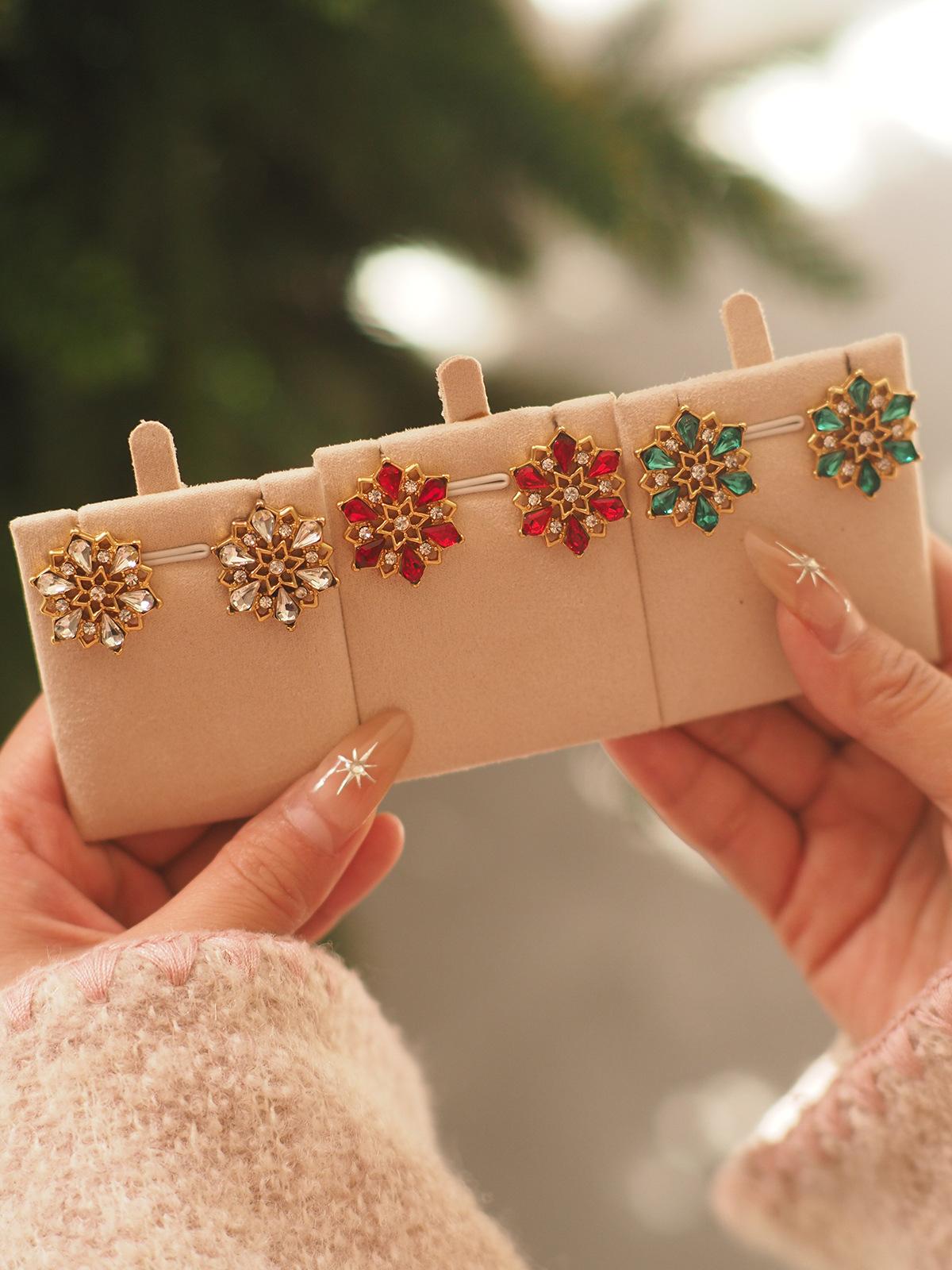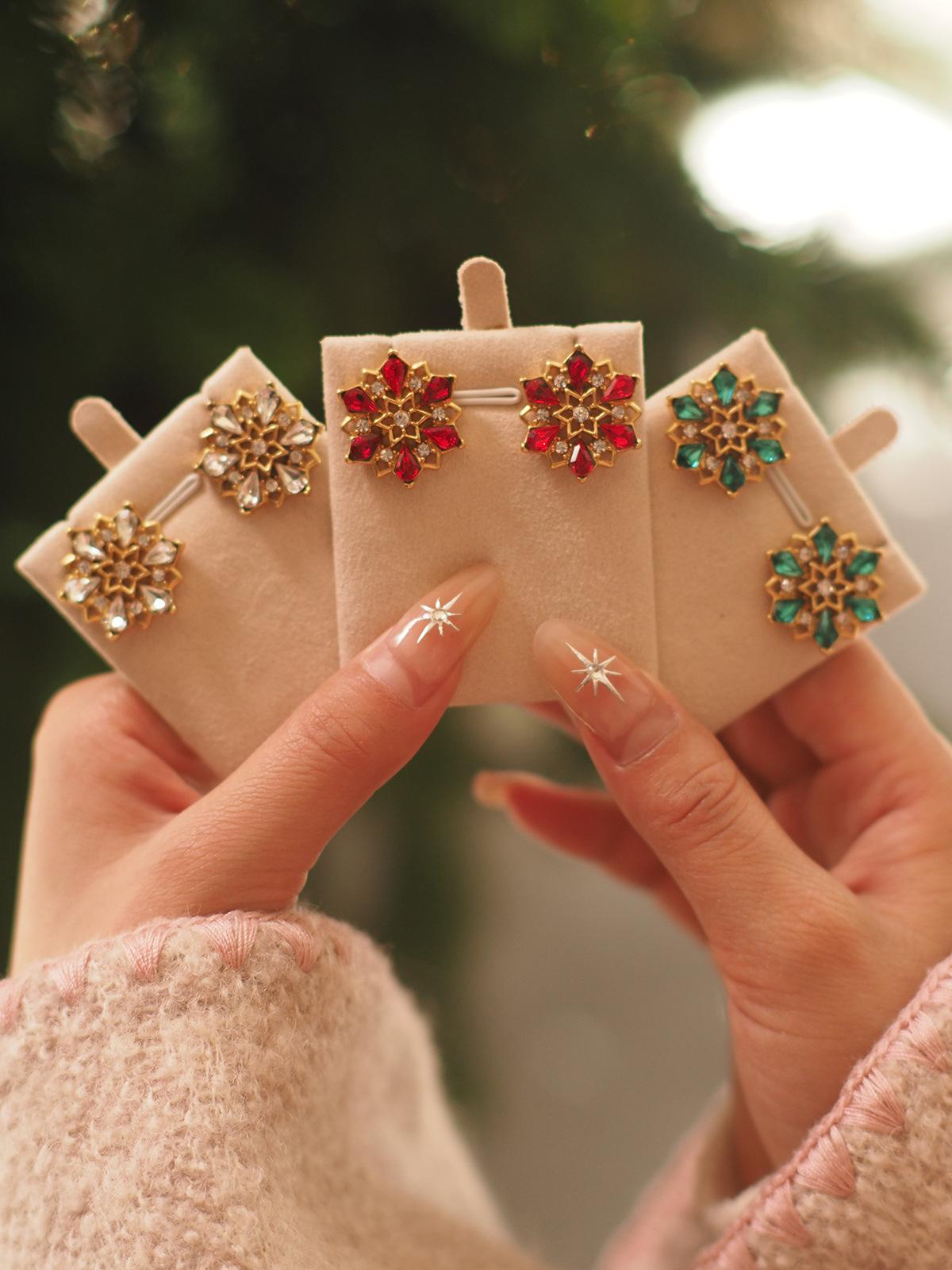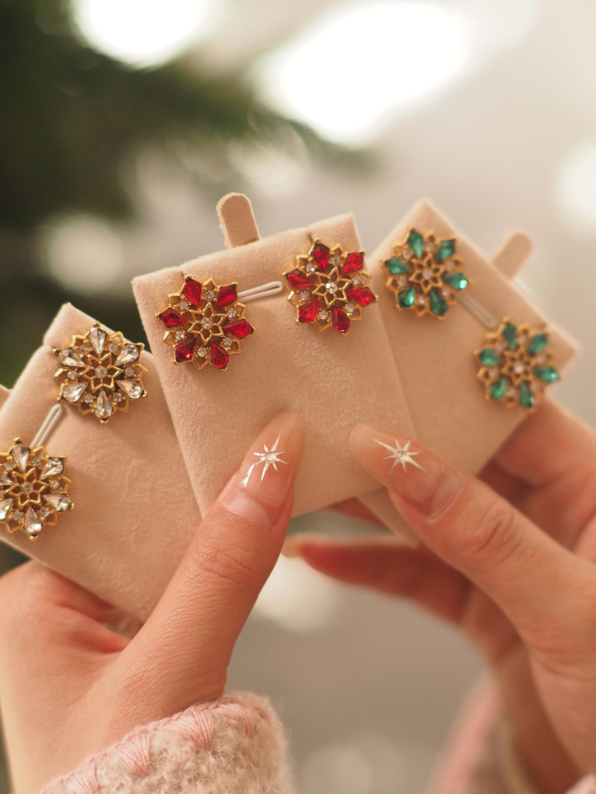Pendientes Antiguos de Nicho Navideño Estilo Copo de Nieve Rojo y Verde Cuifali Trifari Medio Clips para Orejas Sin Agujeros