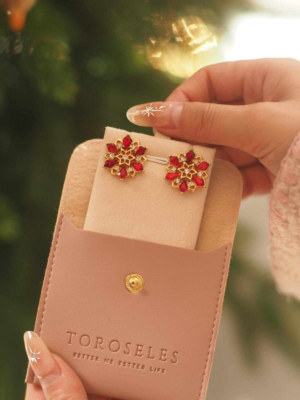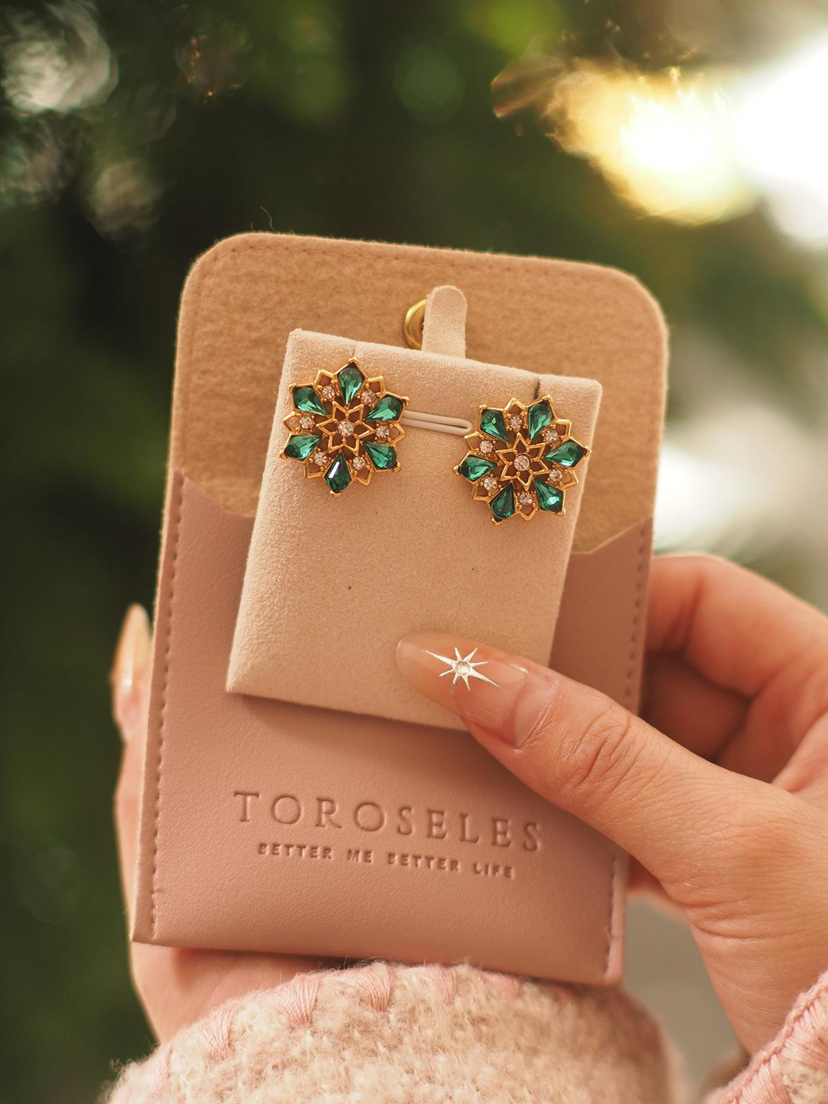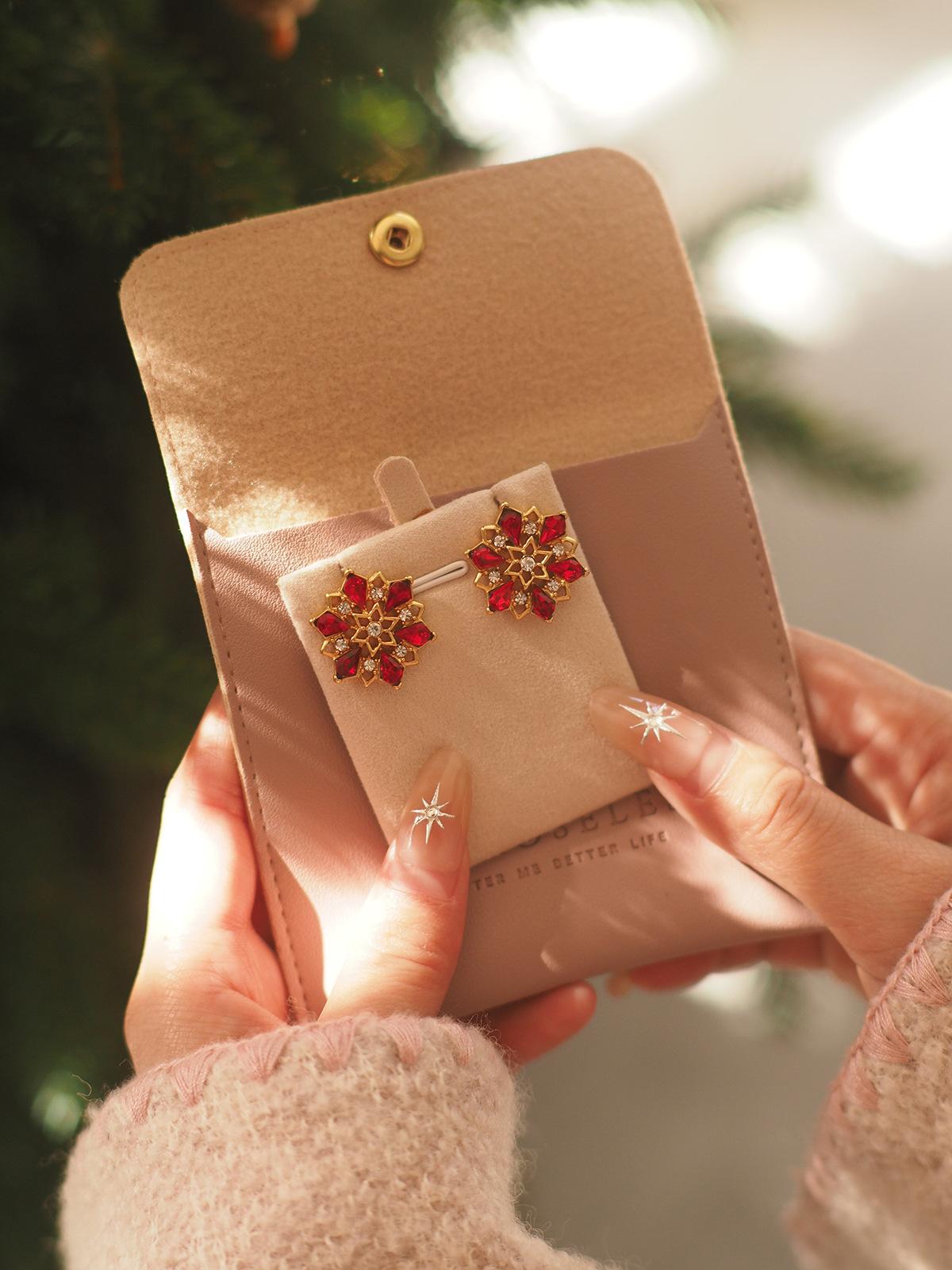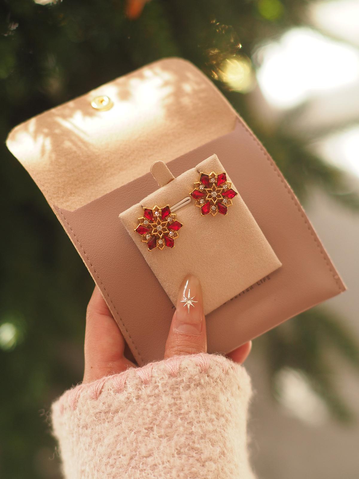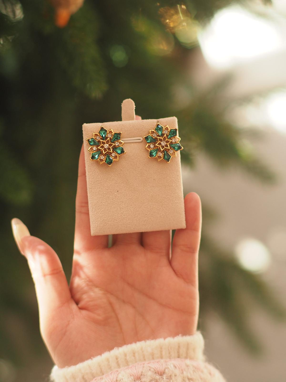 Pendientes Antiguos de Nicho Navideño Estilo Copo de Nieve Rojo y Verde Cuifali Trifari Medio Clips para Orejas Sin Agujeros