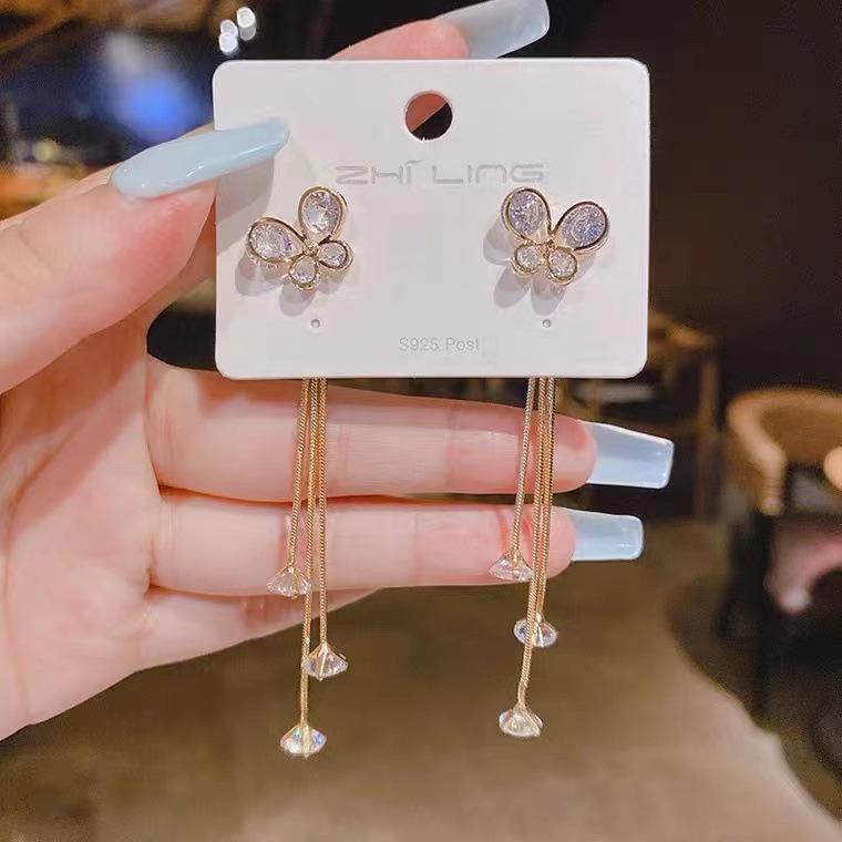 Versión coreana de nuevos pendientes de borla de mariposa de temperamento, pendientes largos de moda para mujer, diseño exquisito, pendientes Joker al por mayor