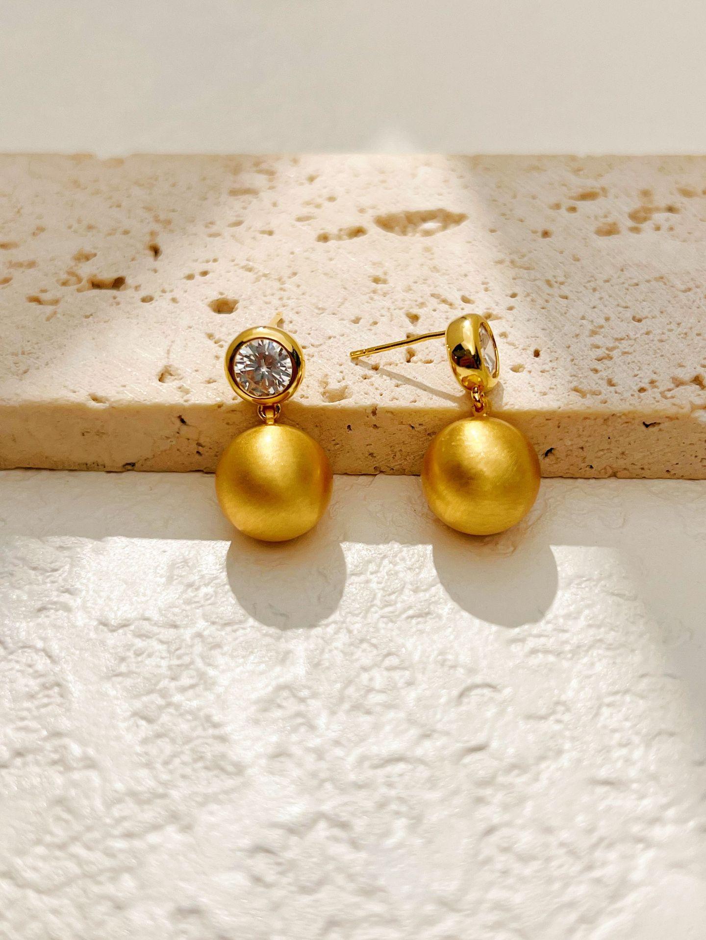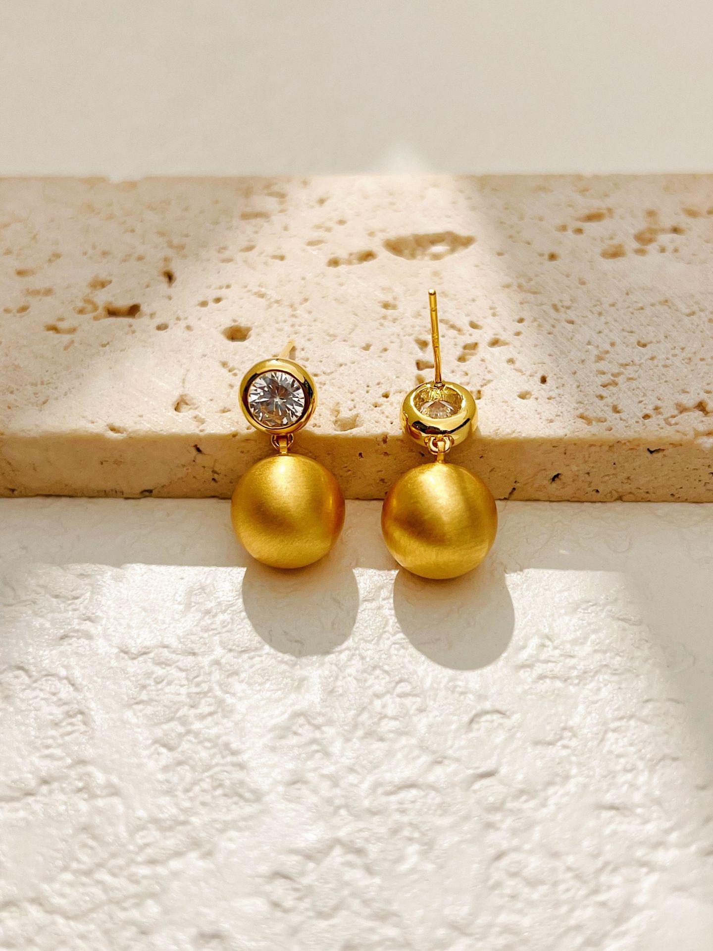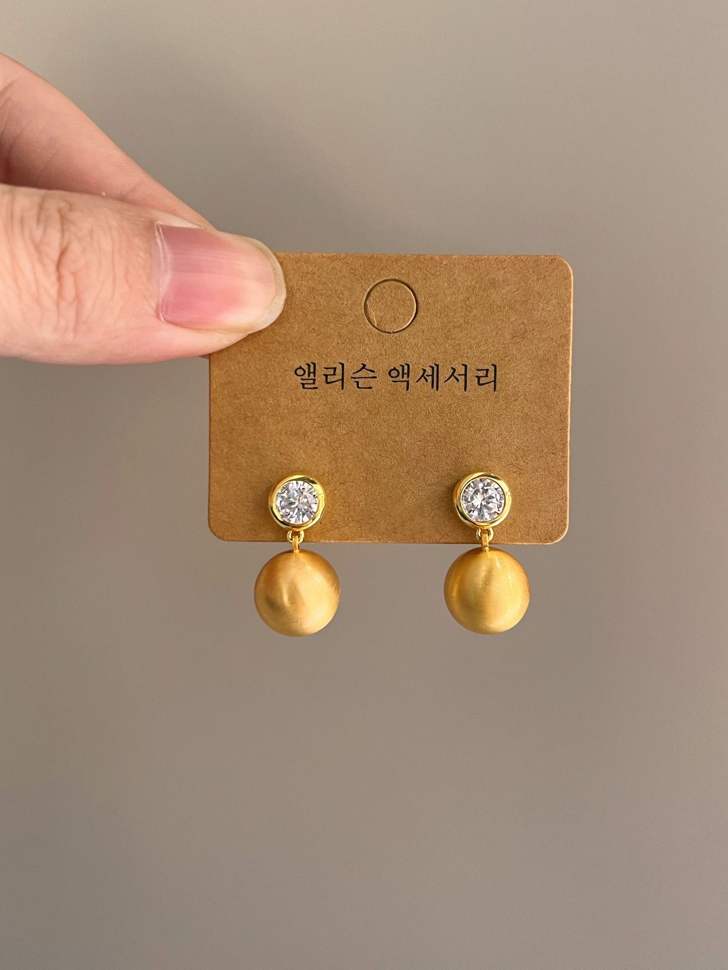 Nuevos Aretes Estilo Retro, Aretes de Cobre Cepillado, Aretes de Bola Redonda, de Alta Gama, Accesorios Modernos y Versátiles
