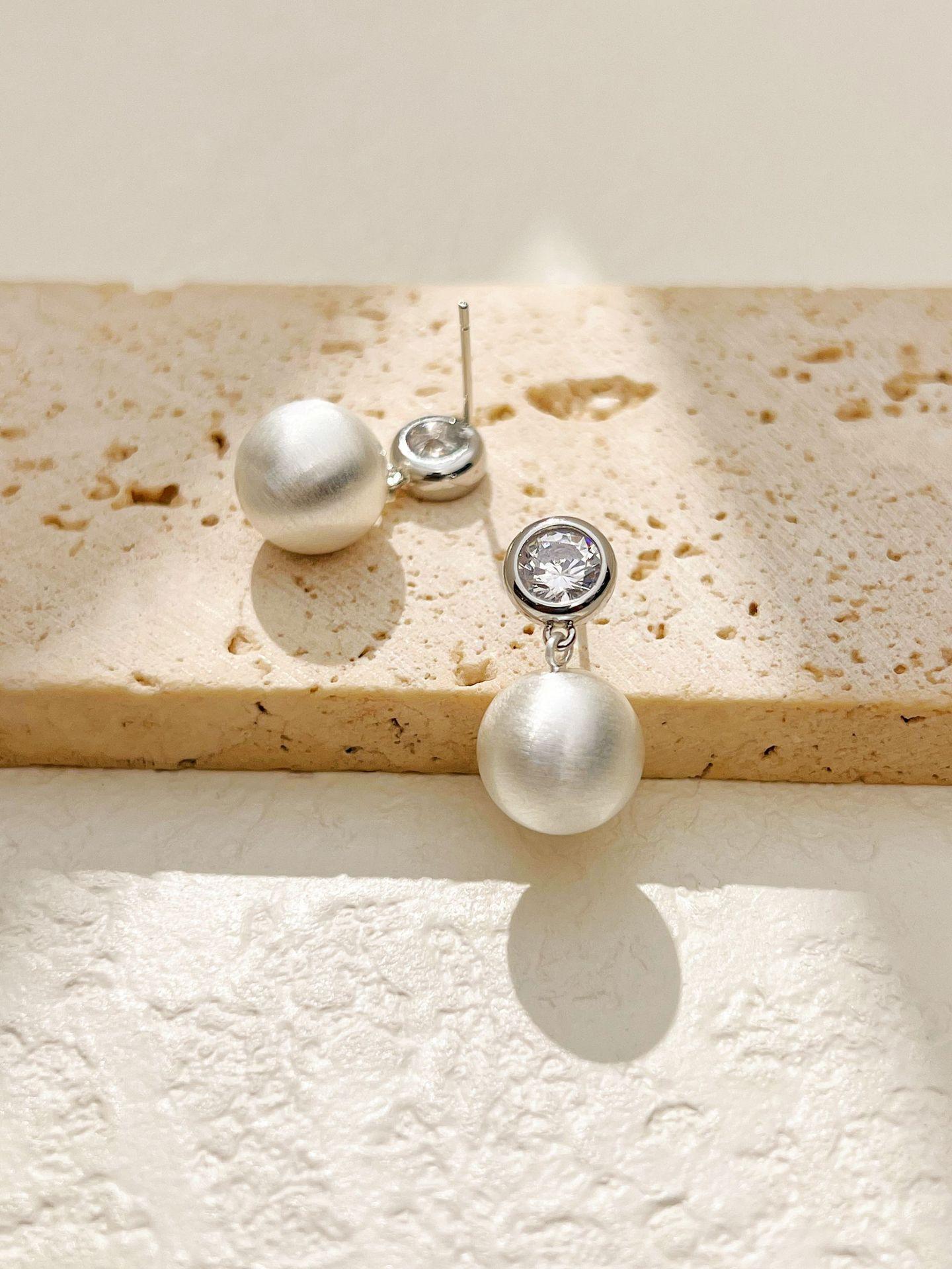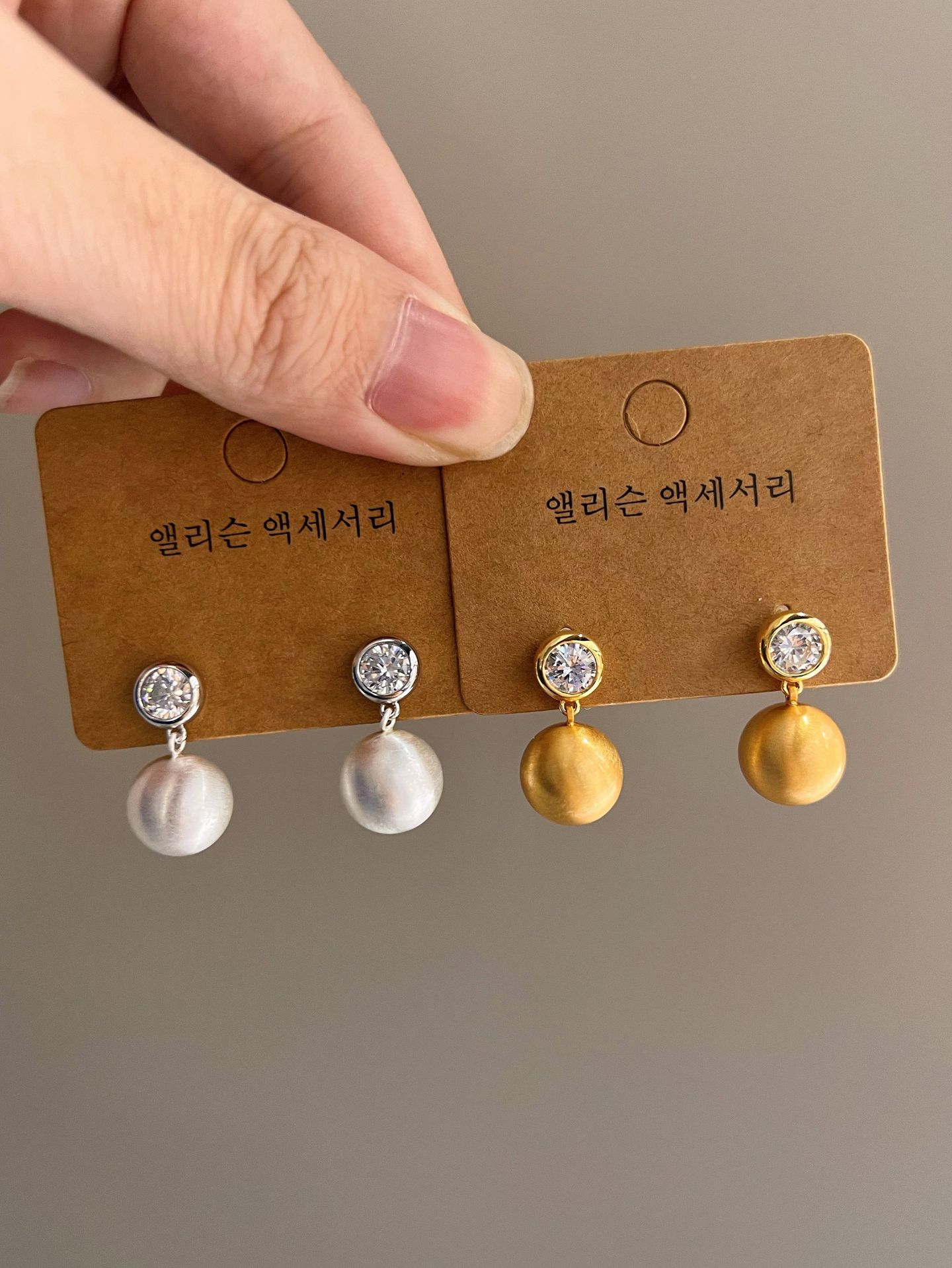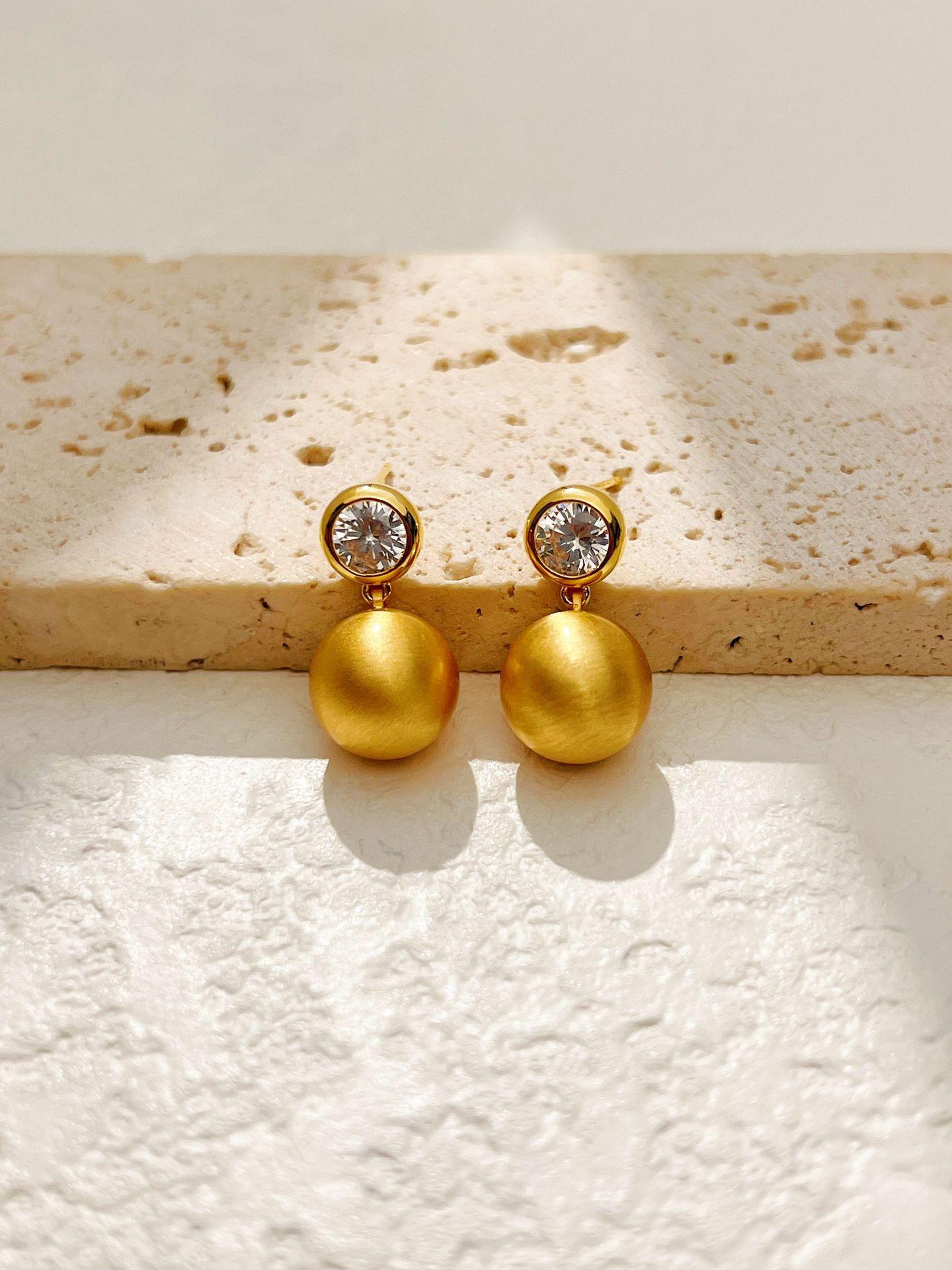 Nuevos Aretes Estilo Retro, Aretes de Cobre Cepillado, Aretes de Bola Redonda, de Alta Gama, Accesorios Modernos y Versátiles
