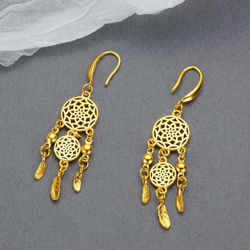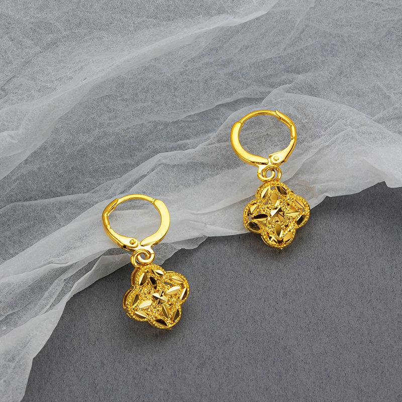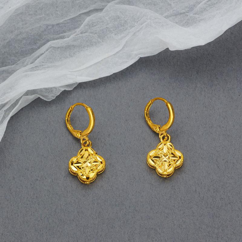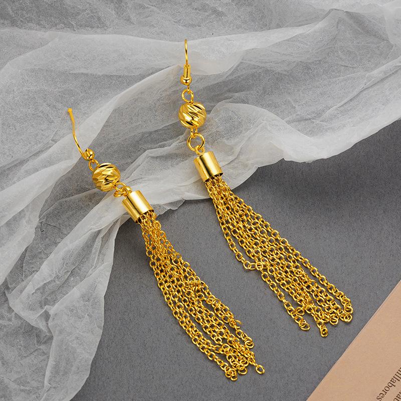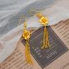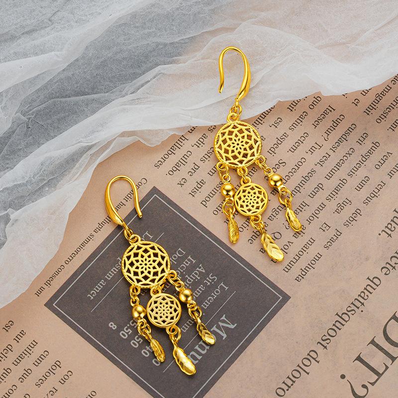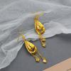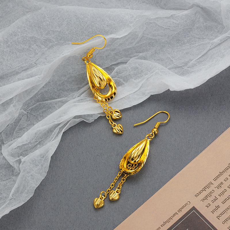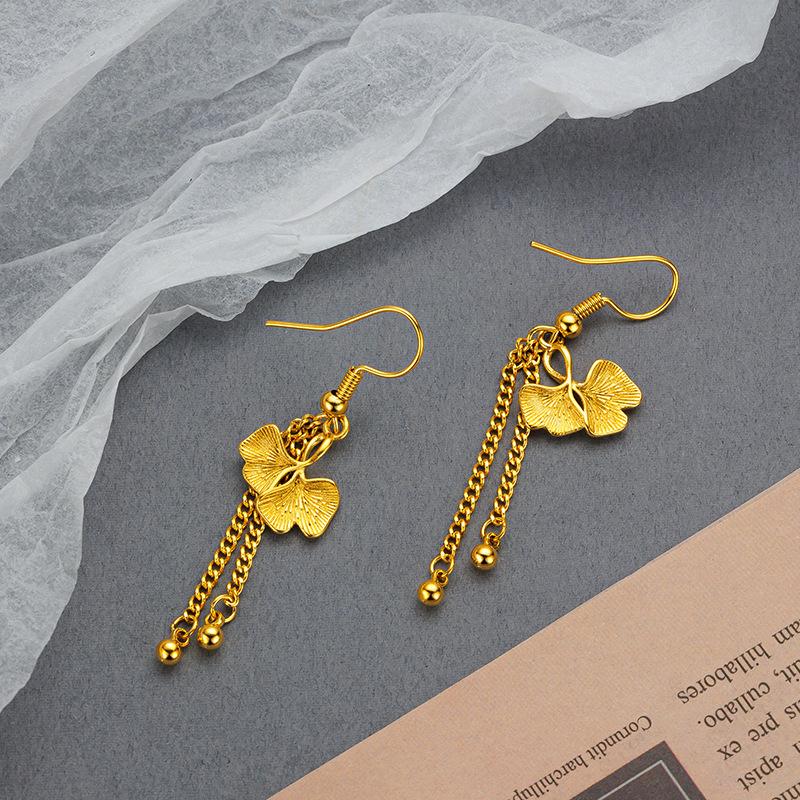 Pendientes largos con borlas y flores chapados en oro de 18 quilates para mujer de Niche Design Sense, pendientes retro con forma de trébol y amor en oro arena.