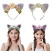 Diadema con orejas de gato y flores artificiales de estilo europeo y americano, accesorios para el cabello para fiestas de fantasmas, diadema de princesa, tocado para Halloween y carnaval.