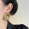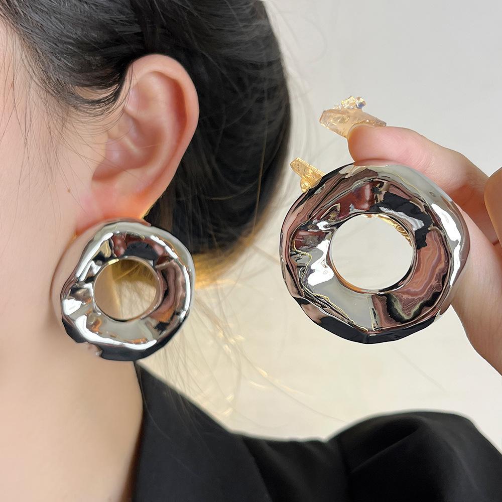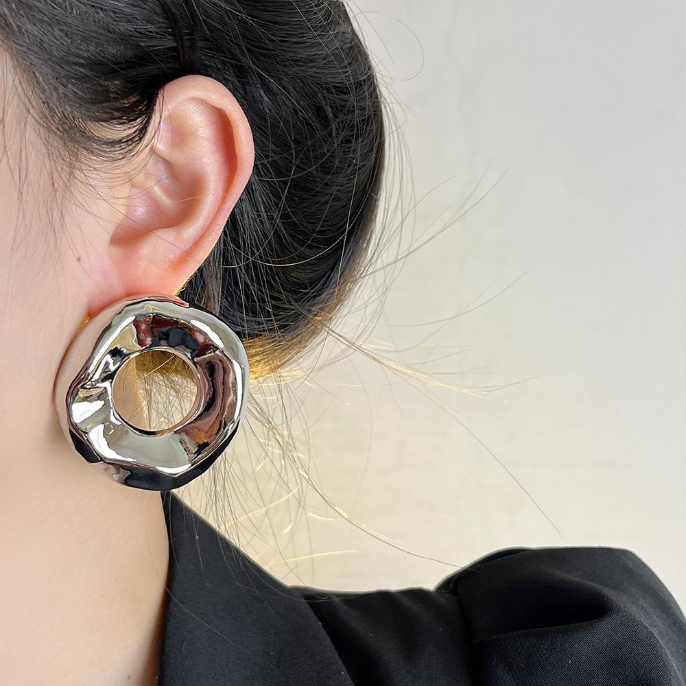 Pendientes redondos huecos irregulares europeos y americanos para mujer, pendientes de metal de alta gama de nicho de lujo ligeros y dorados, pendientes de temperamento retro