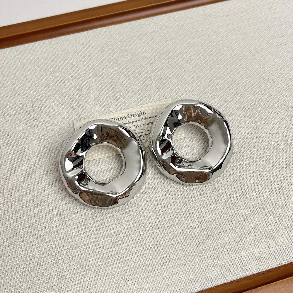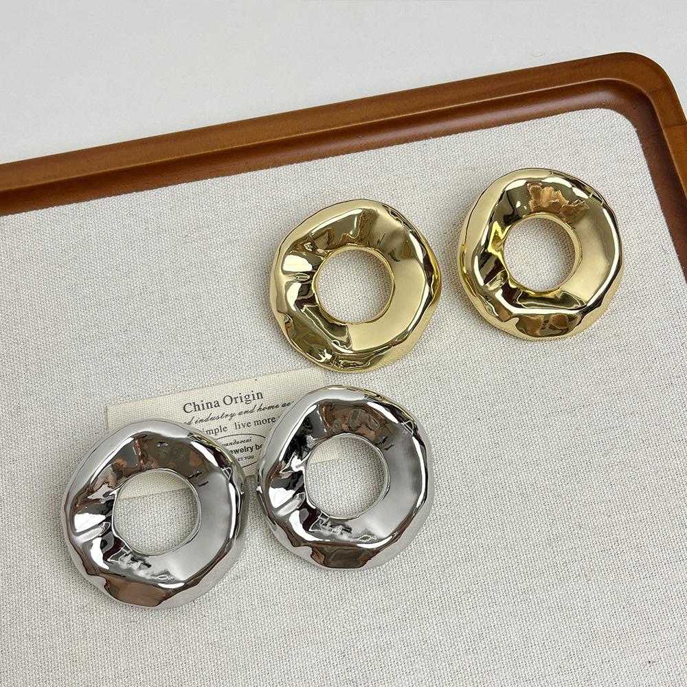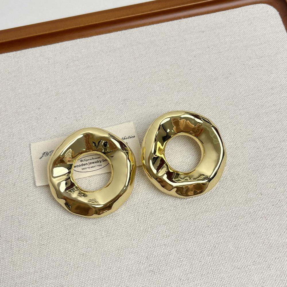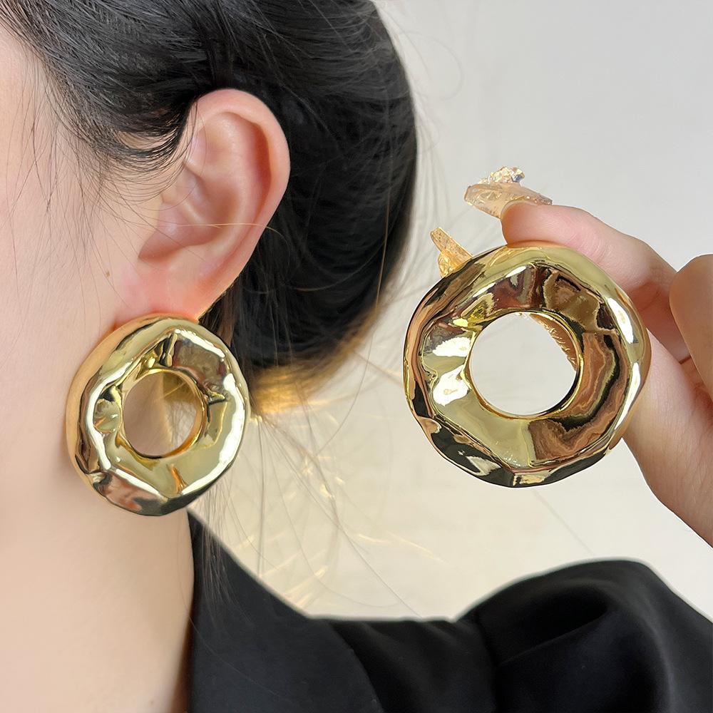 Compra Pendientes redondos huecos irregulares europeos y americanos para mujer, pendientes de metal de alta gama de nicho de lujo ligeros y dorados, pendientes de temperamento retro al por mayor en Joom.pro