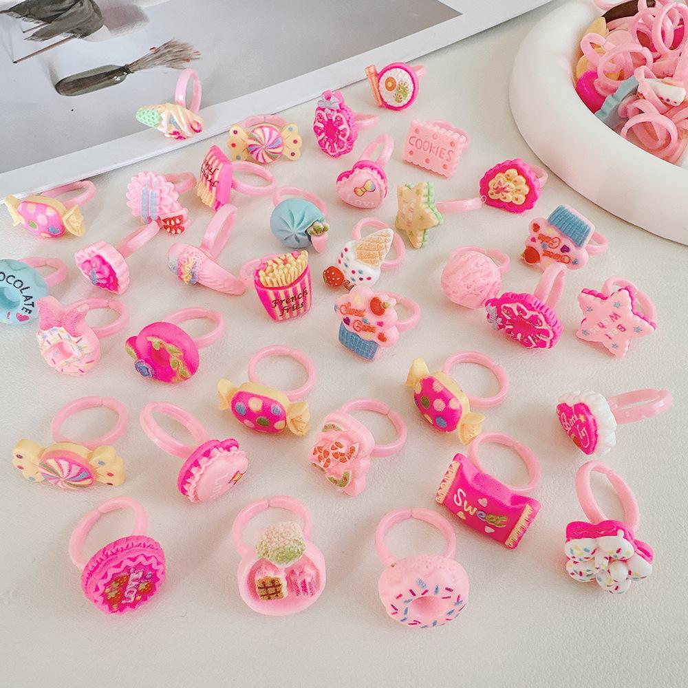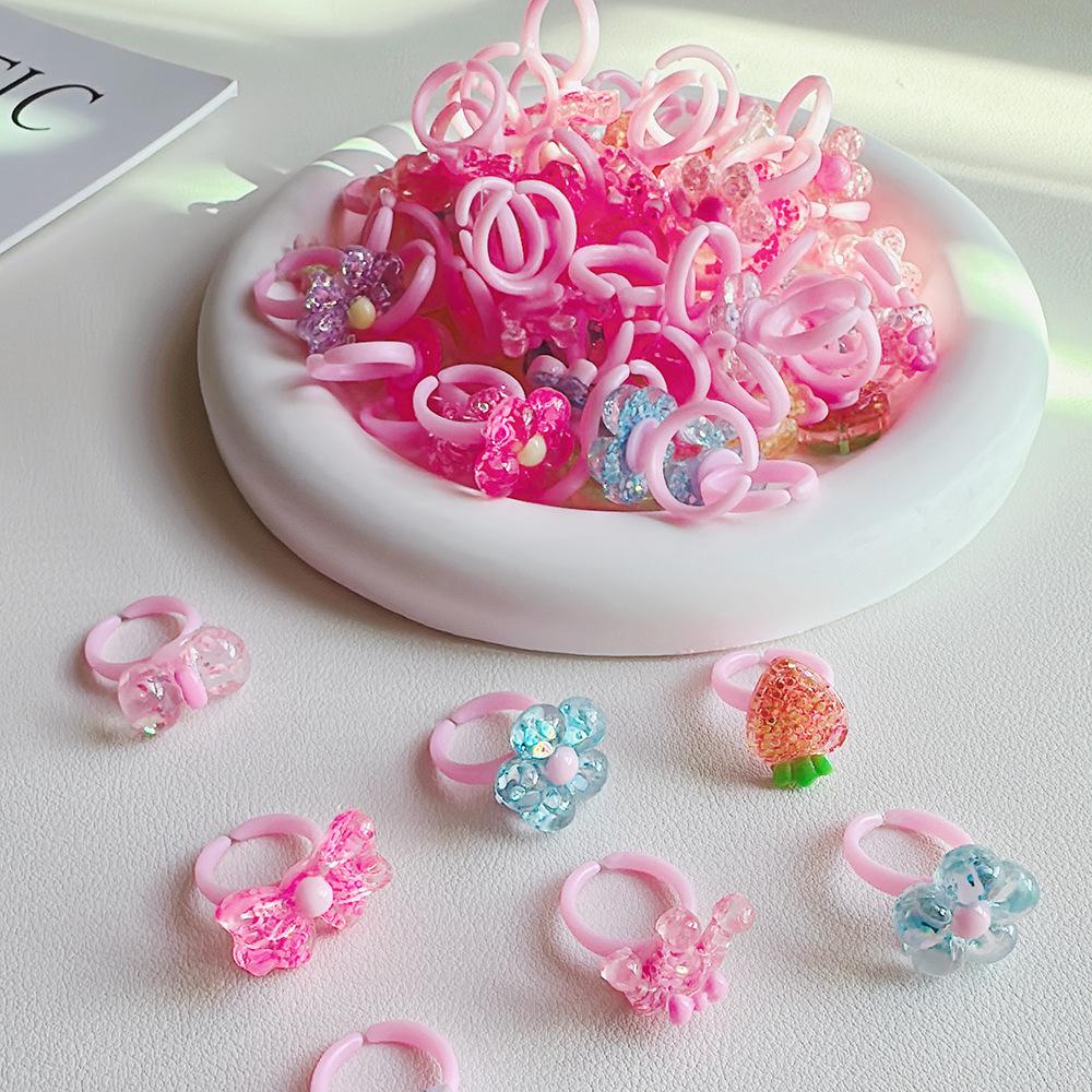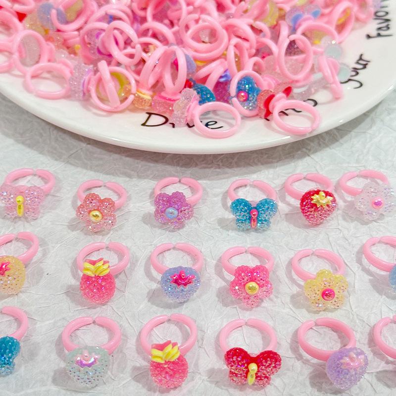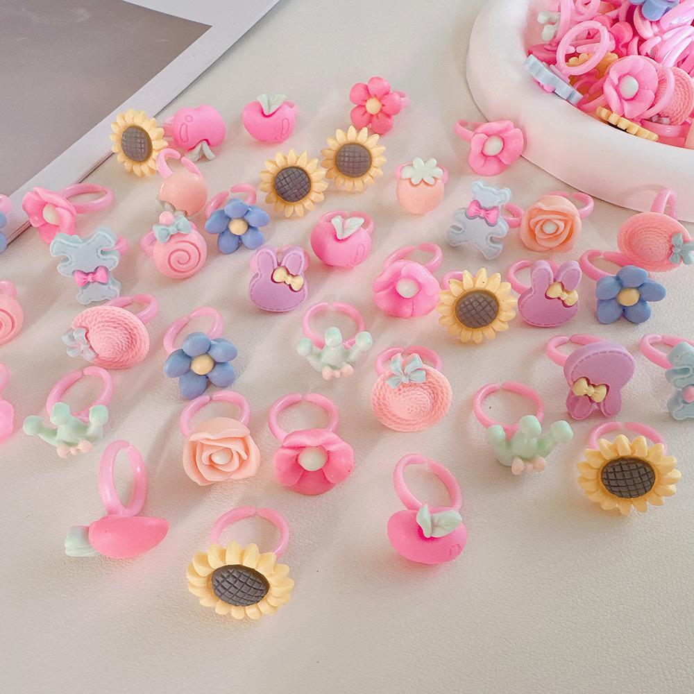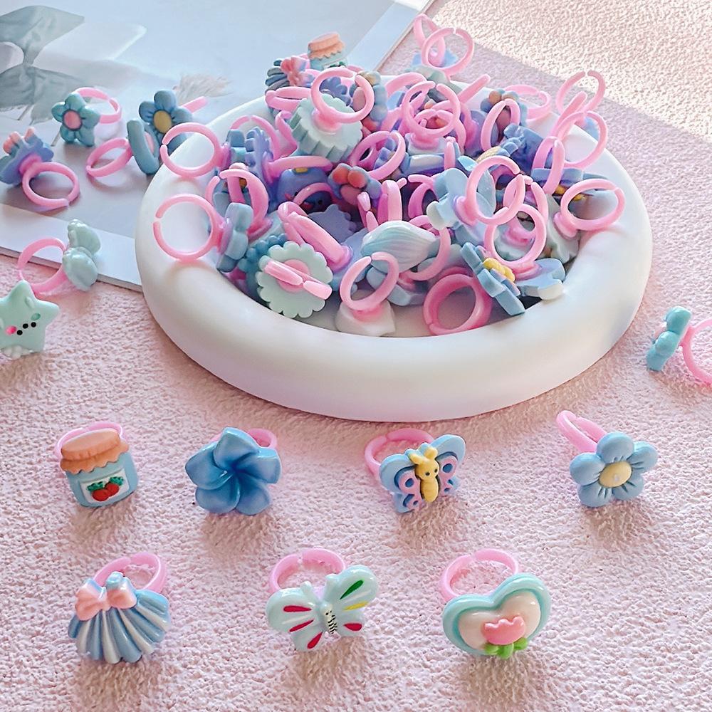 Anillo de resina de dibujos animados para niños, bonito anillo de princesa para niña, regalo de premio de jardín de infantes, joyería, lote mixto