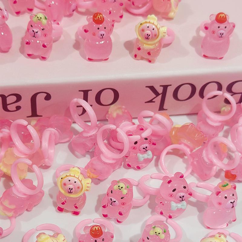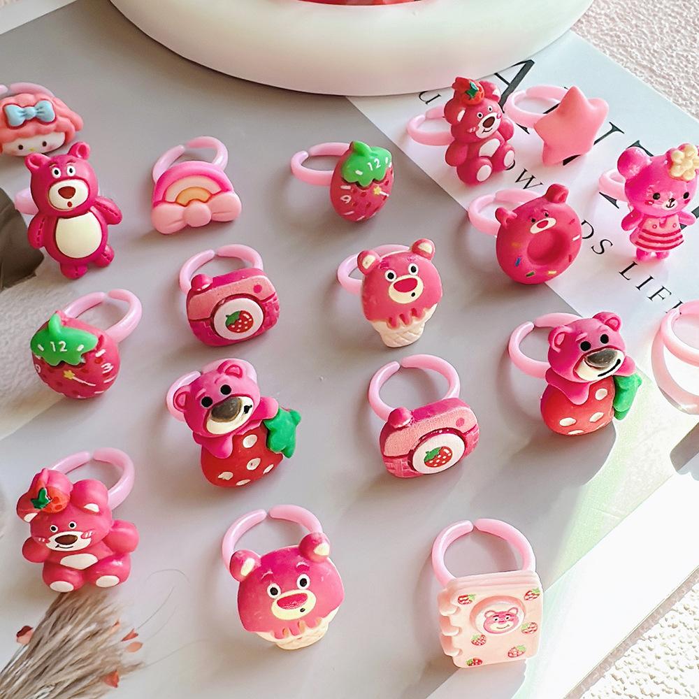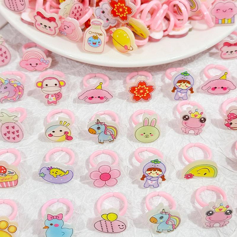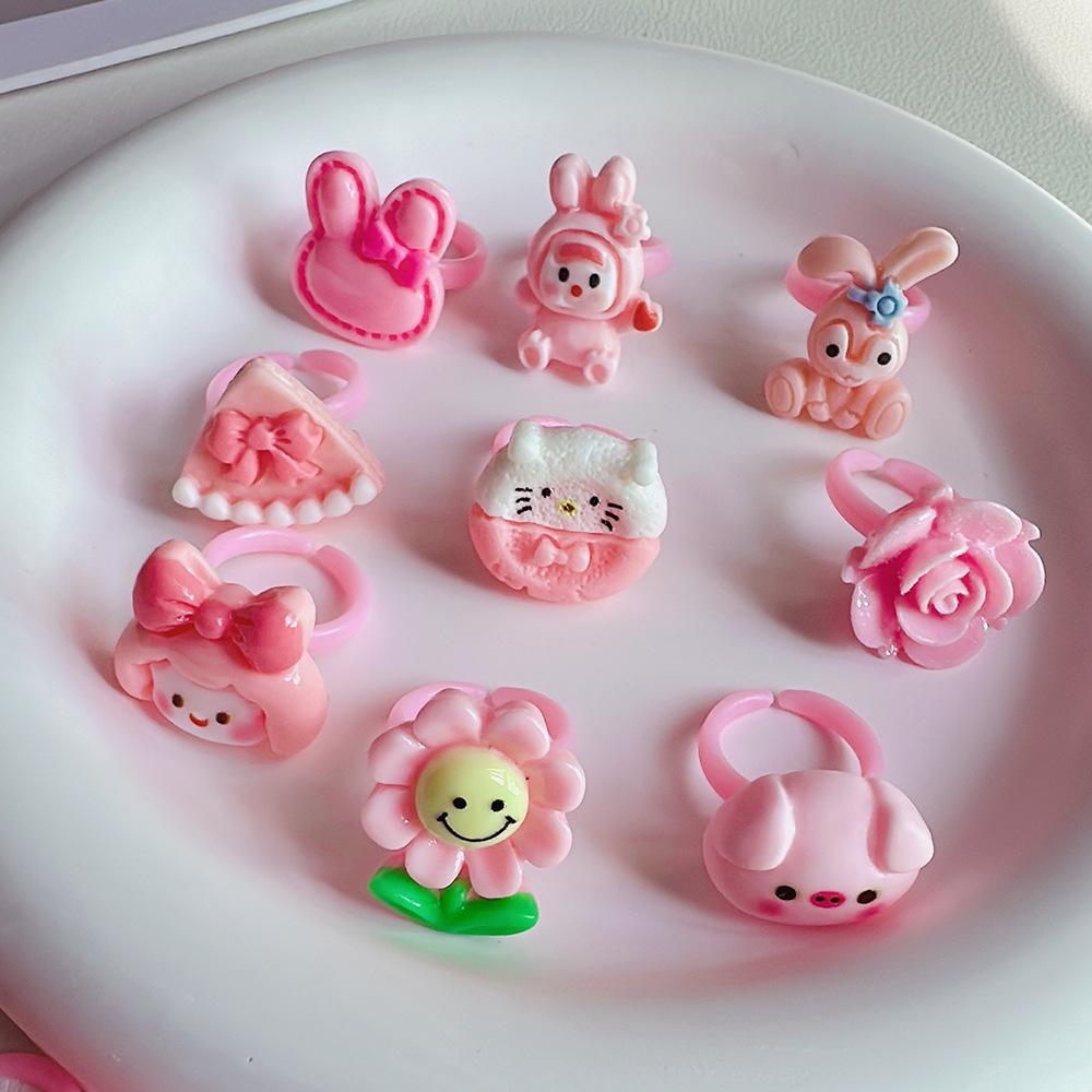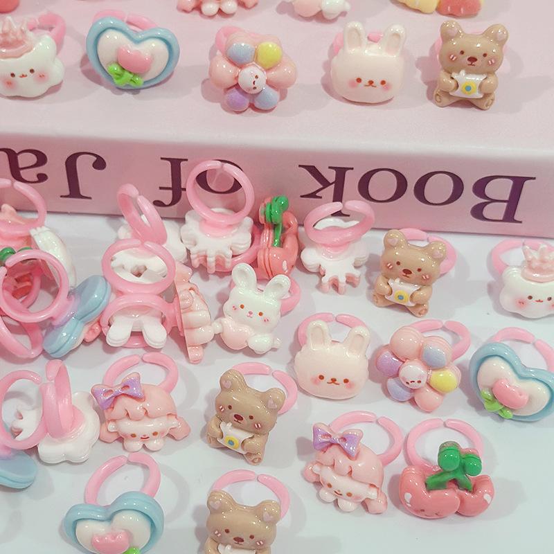Anillo de resina de dibujos animados para niños, bonito anillo de princesa para niña, regalo de premio de jardín de infantes, joyería, lote mixto