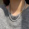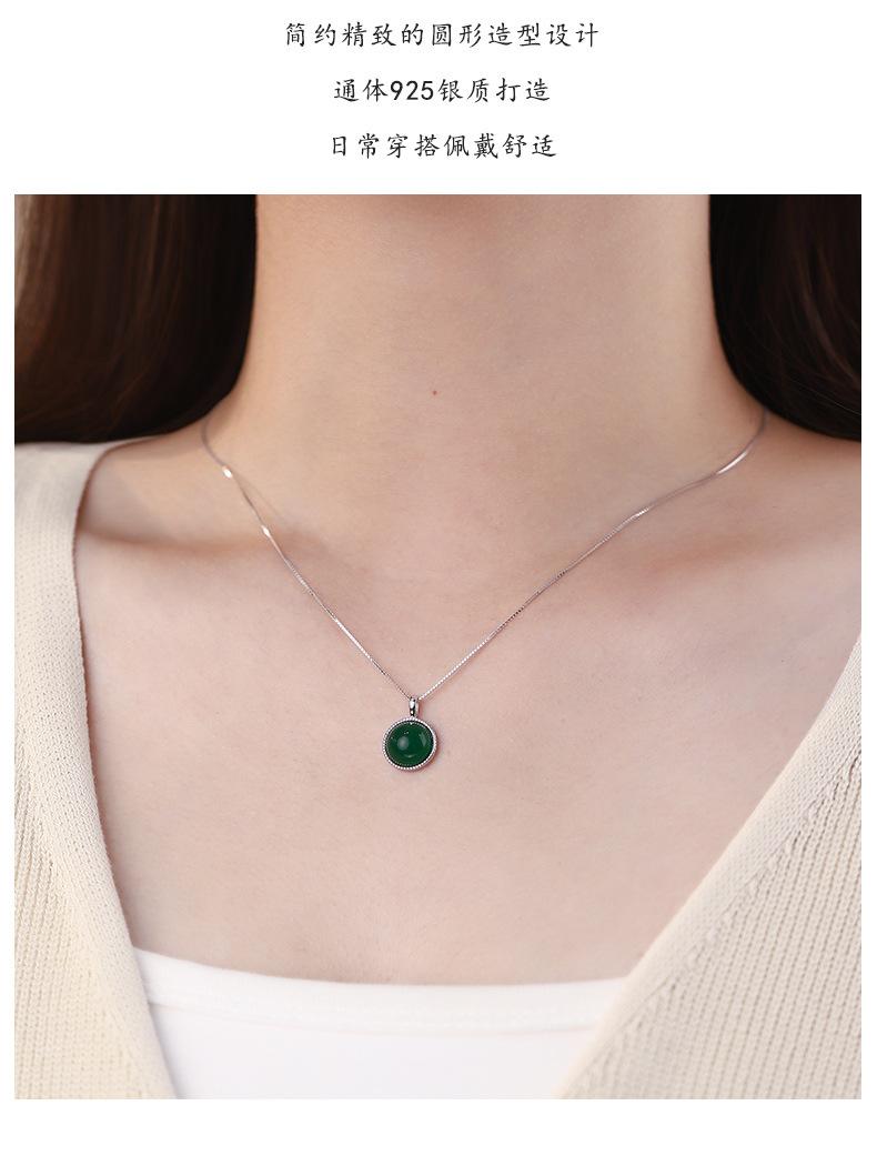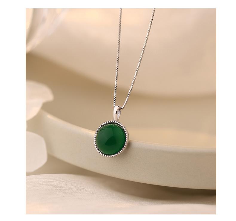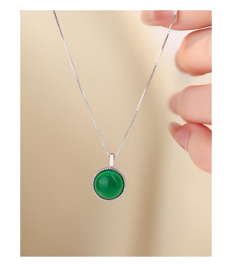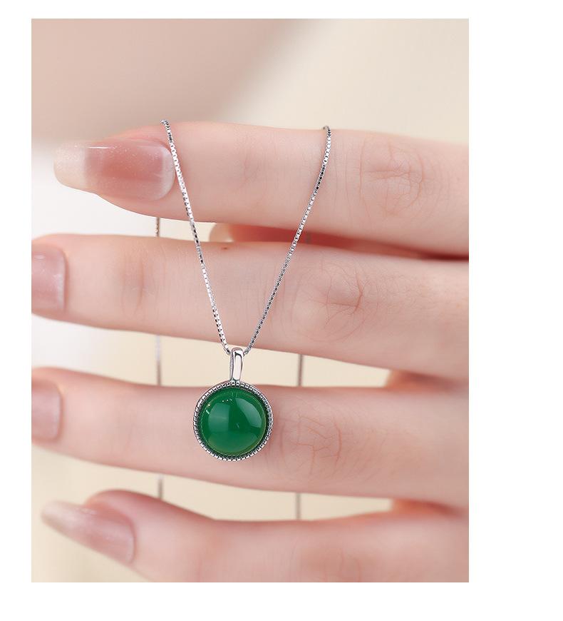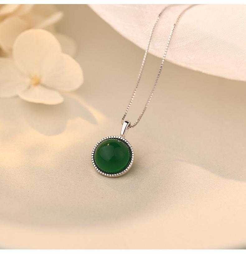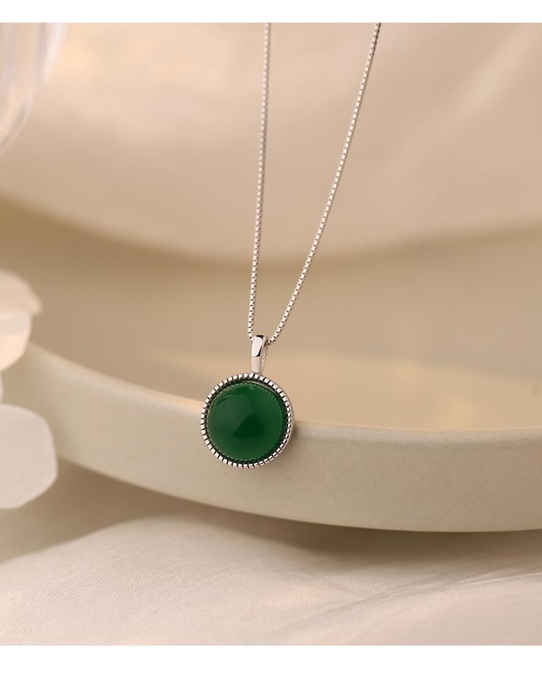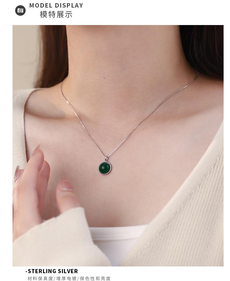 Collar redondo de cuentas verdes de plata esterlina S925 de Ganjia, temperamento retro geométrico, cadena de suéter con personalidad de nicho que combina con todo, cabello de generación en generación