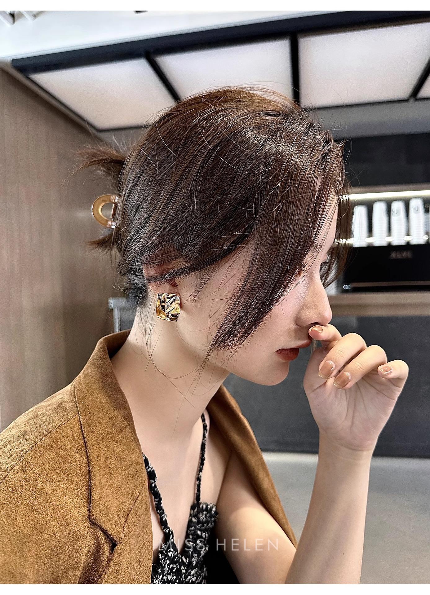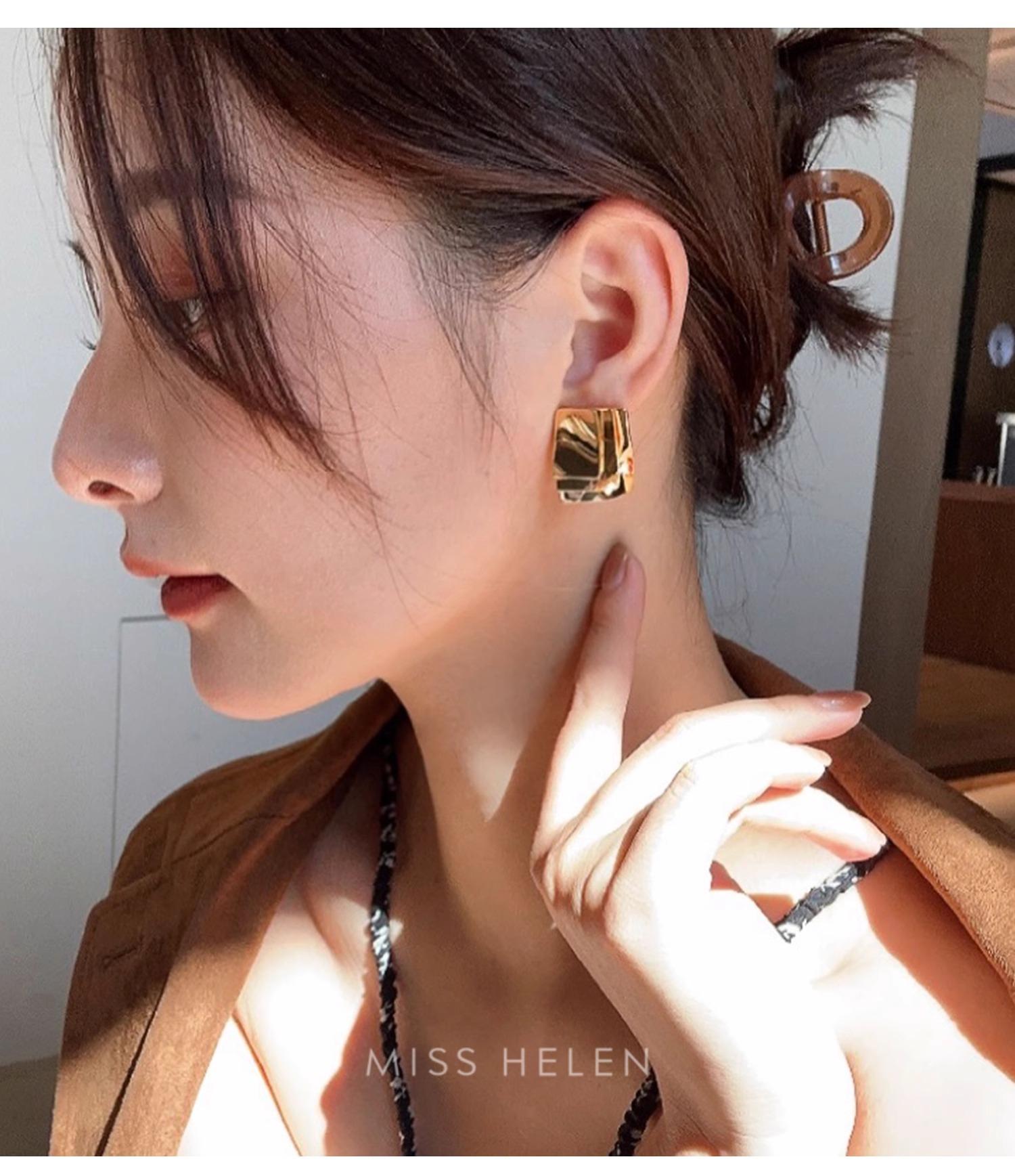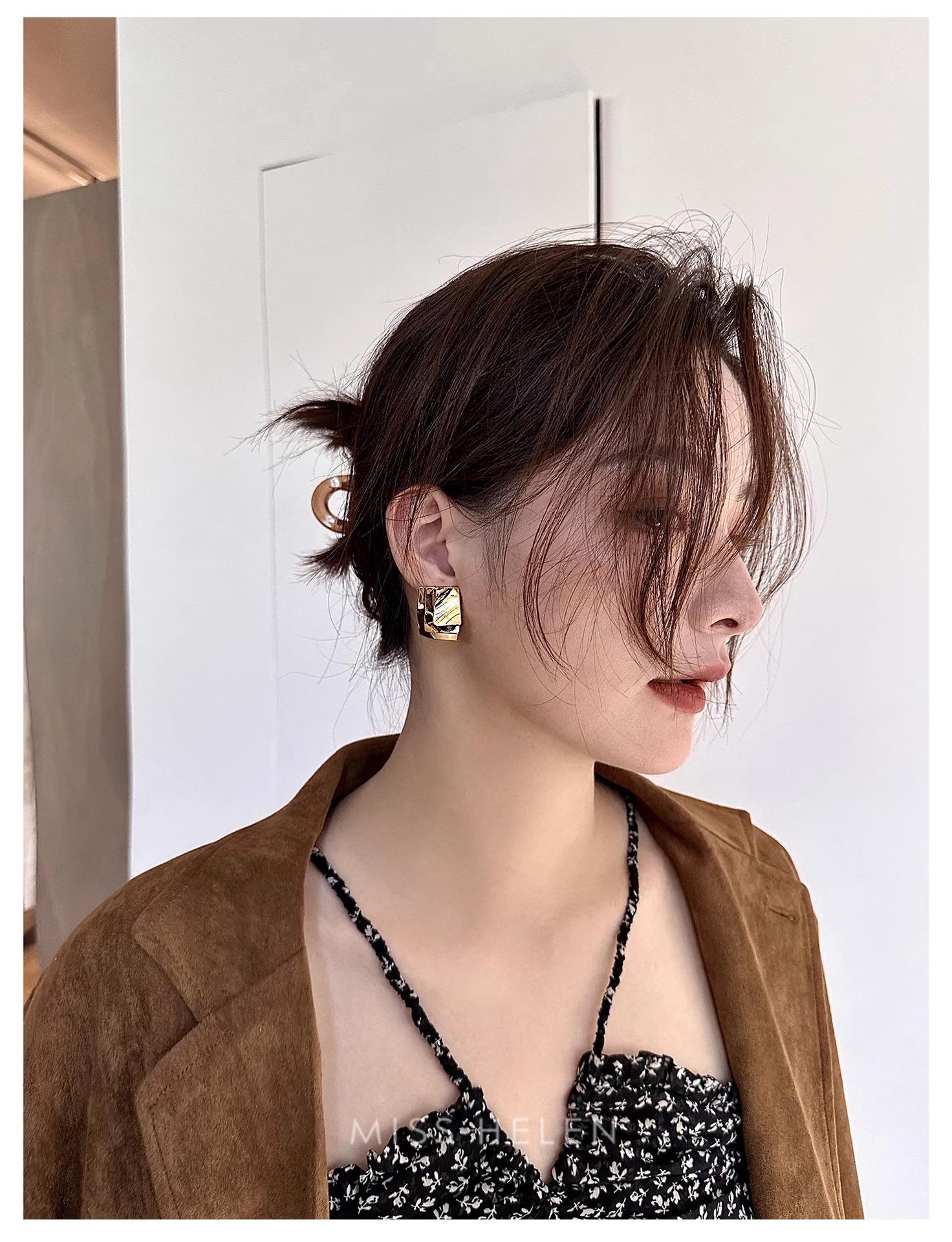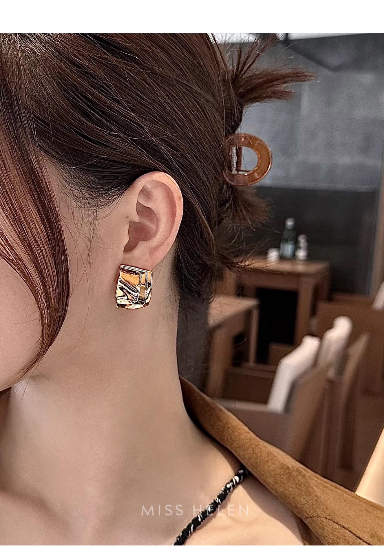 Aretes de Nicho Cuadrados de Estilo Europeo y Americano de Metal, Aretes Distintivos Delicados de Lujo Ligero, Aretes Geométricos de Alta Gama para Mujer
