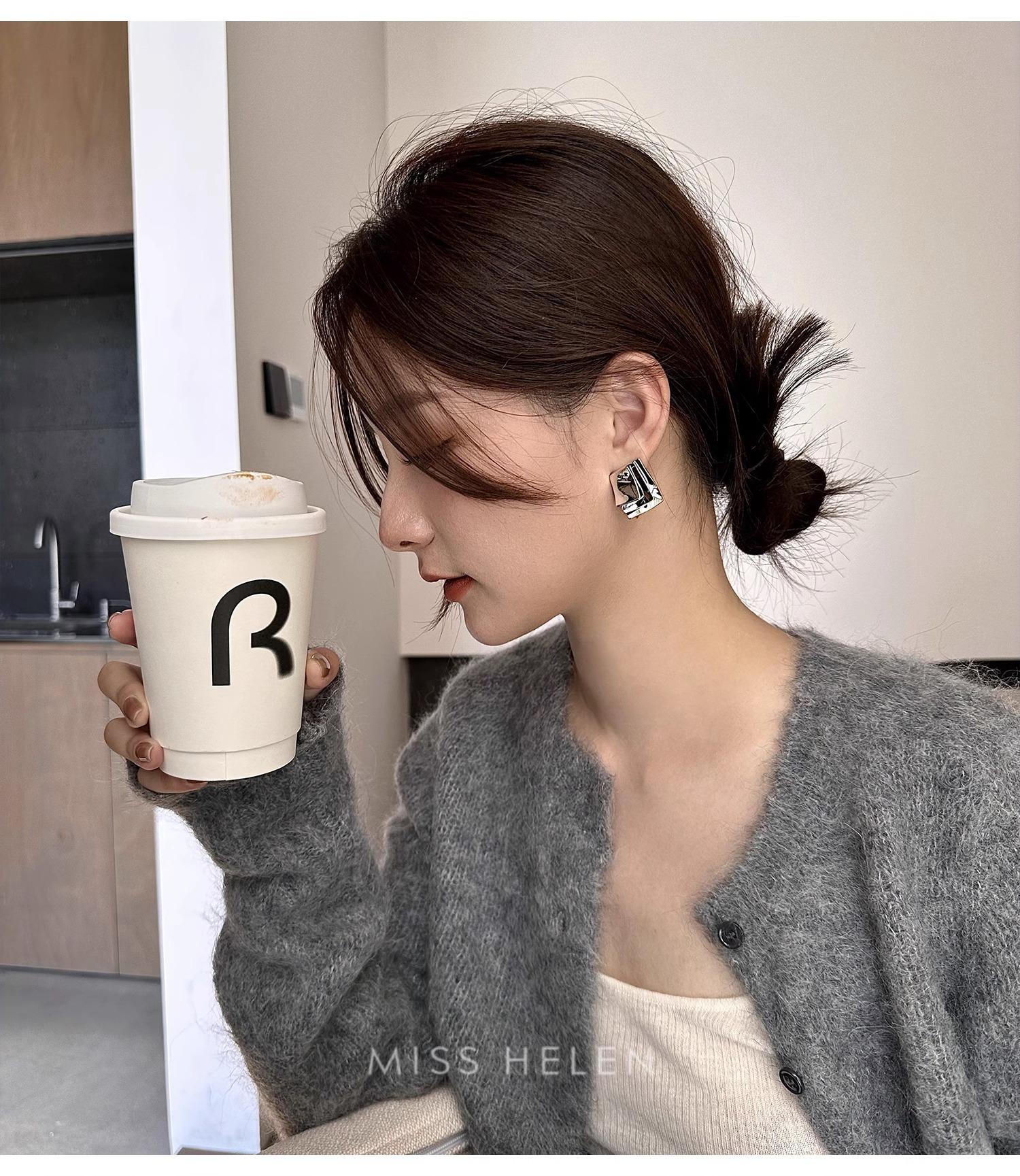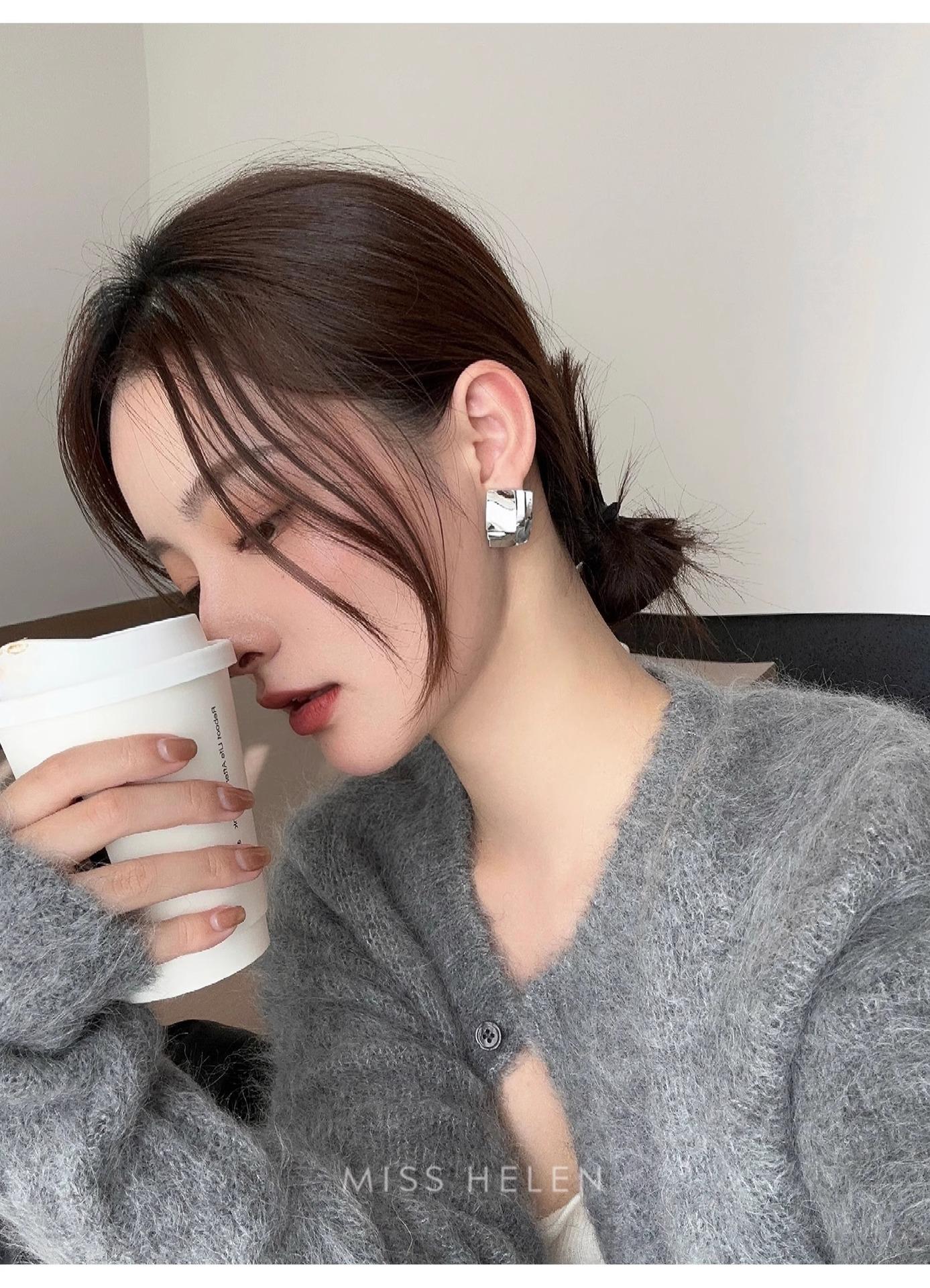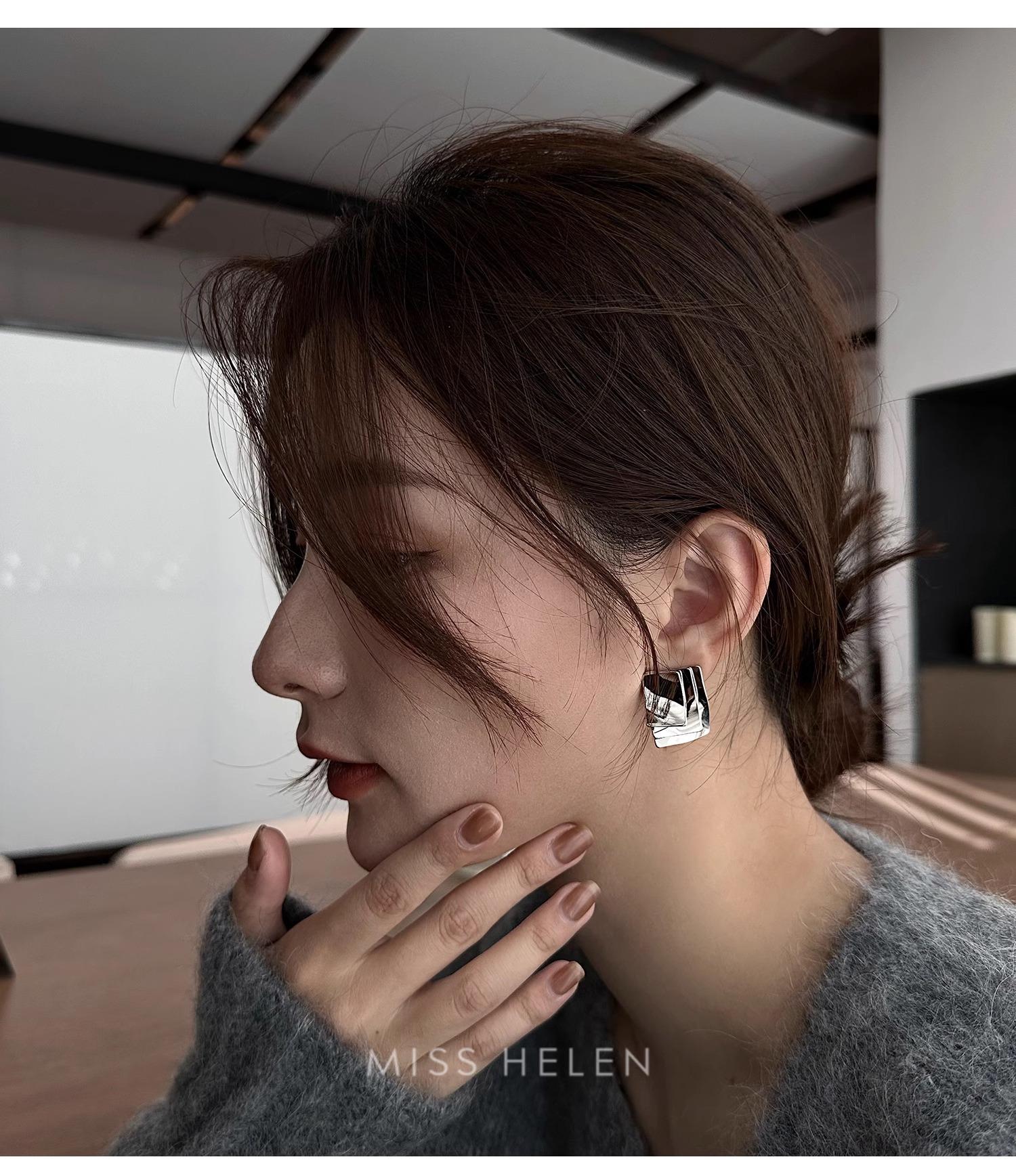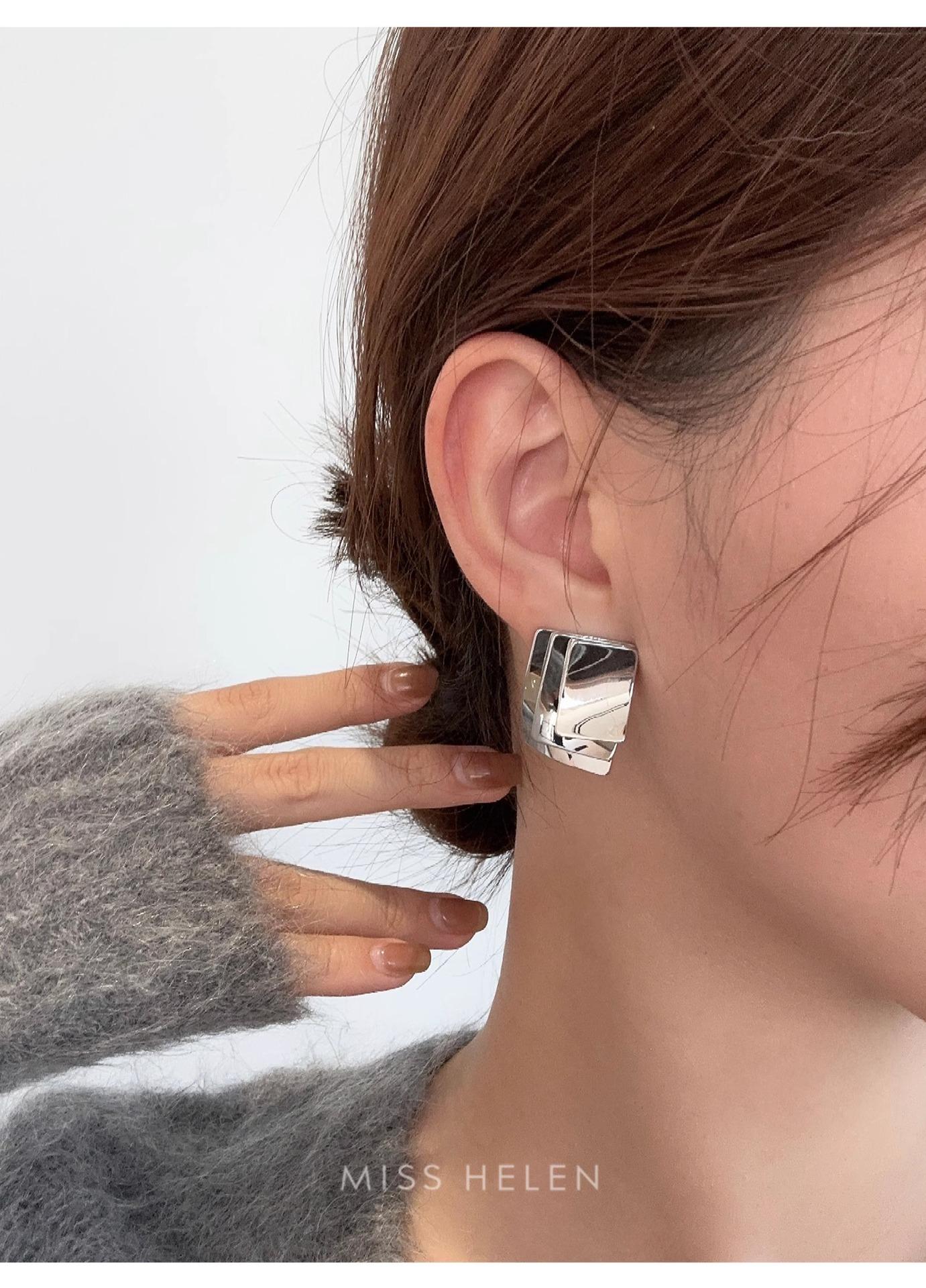 Aretes de Nicho Cuadrados de Estilo Europeo y Americano de Metal, Aretes Distintivos Delicados de Lujo Ligero, Aretes Geométricos de Alta Gama para Mujer