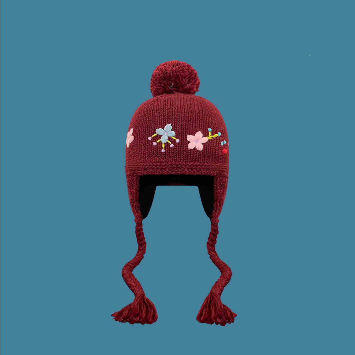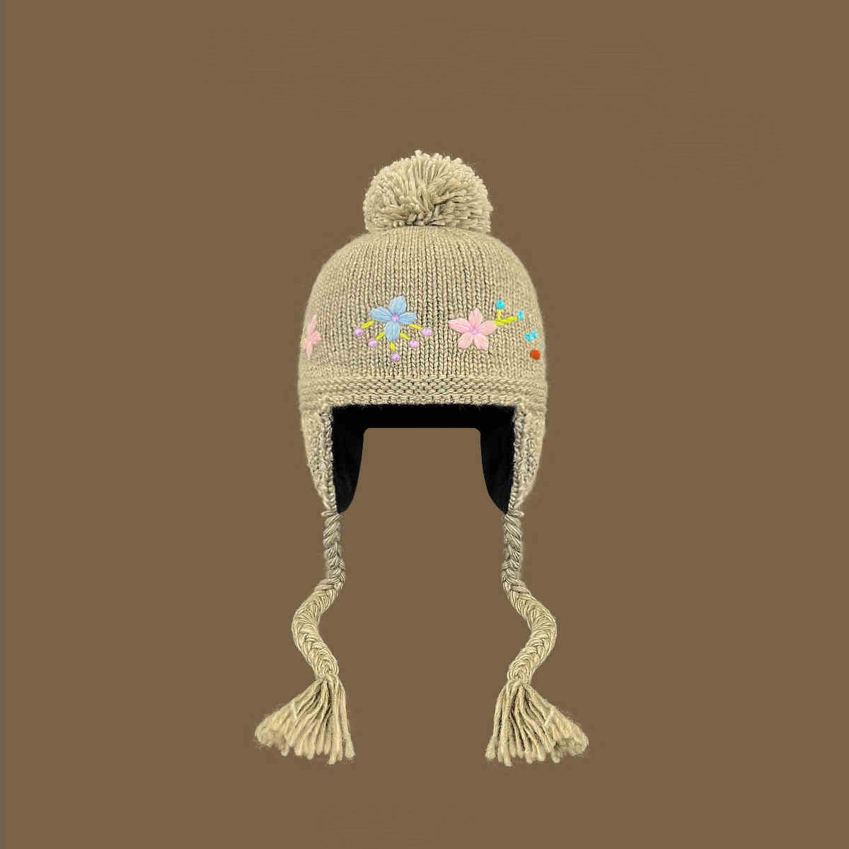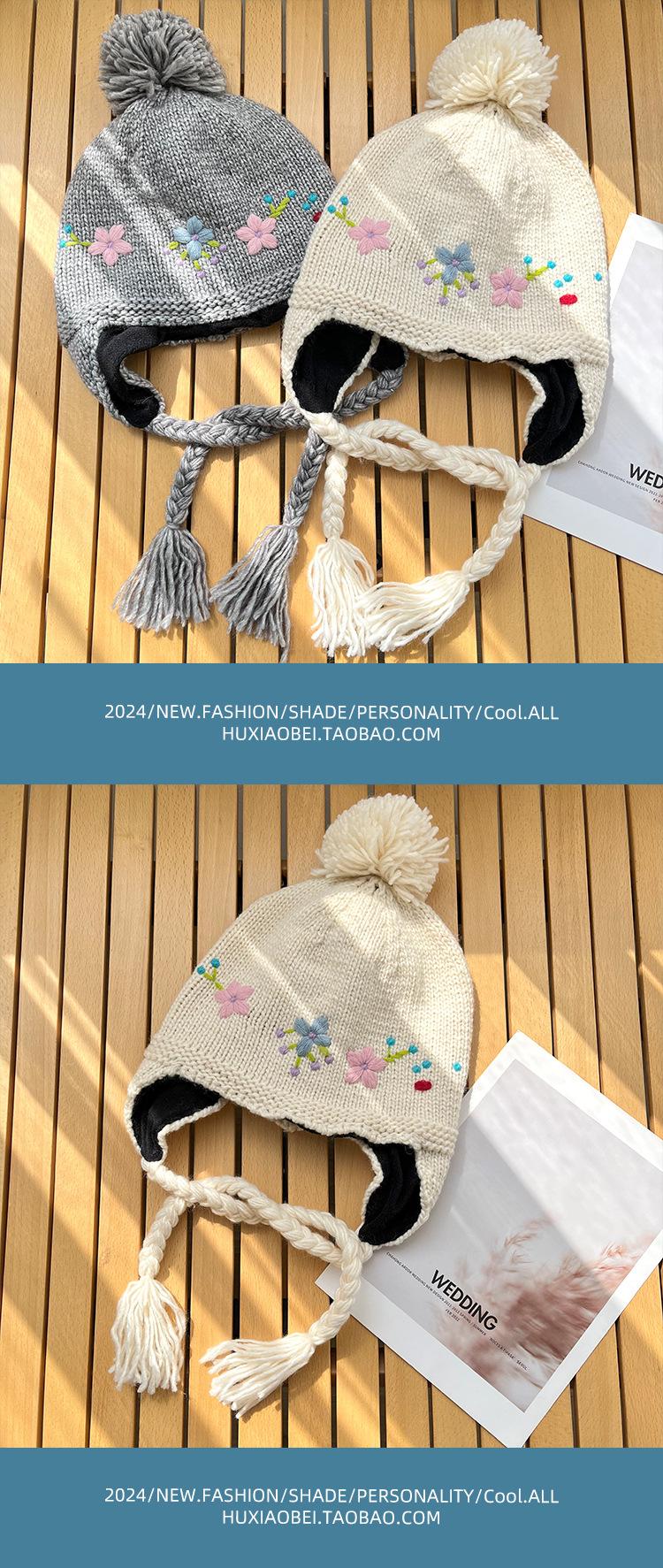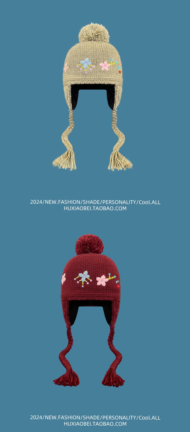 Gorro Lei Feng de punto hecho a mano con bordado vintage en jacquard, con protección para las orejas, para mujer, para otoño e invierno, resistente al frío y cálido, bonito gorro de lana de nicho.
