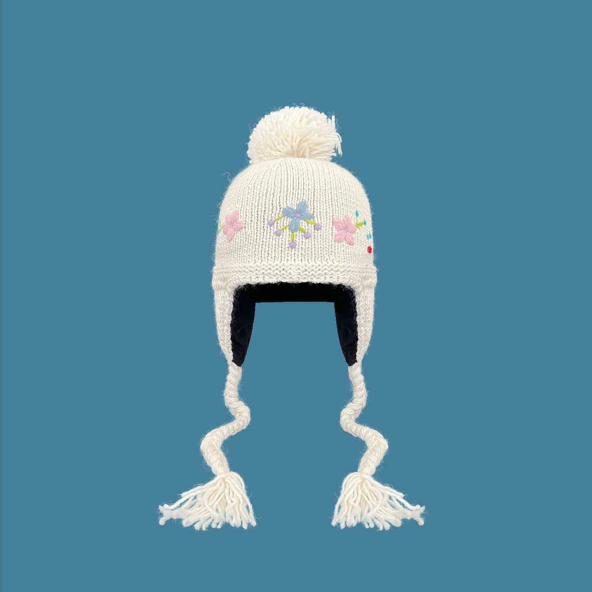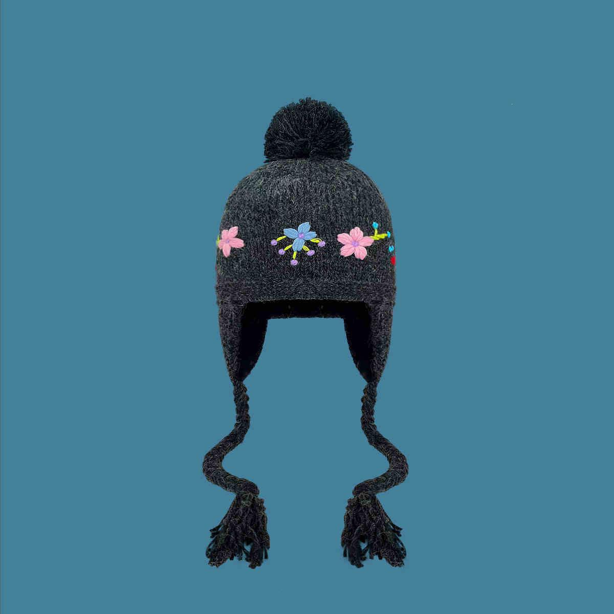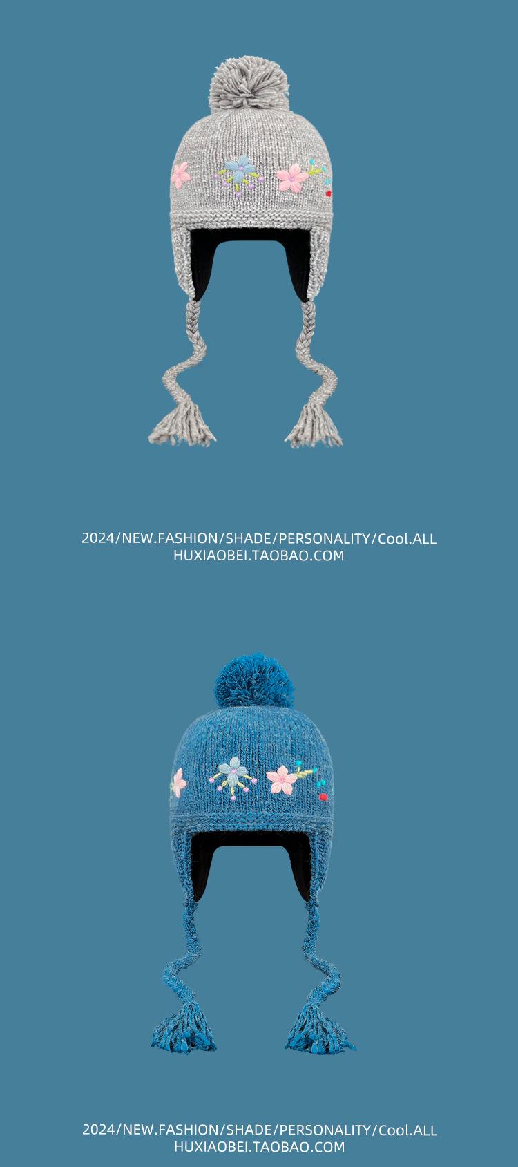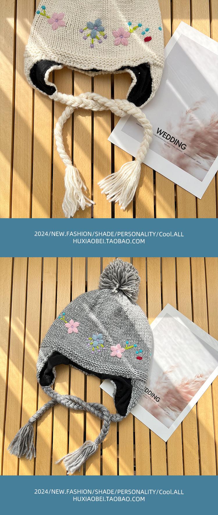 Gorro Lei Feng de punto hecho a mano con bordado vintage en jacquard, con protección para las orejas, para mujer, para otoño e invierno, resistente al frío y cálido, bonito gorro de lana de nicho.