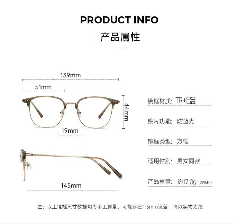 Nuevas gafas ultraligeras de media montura para mujeres. La miopía se puede equipar con una montura grande para que los hombres muestren el rostro. Montura para ojos pequeños para que la cara grande se vea delgada.