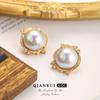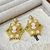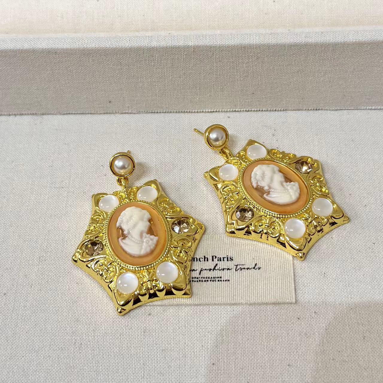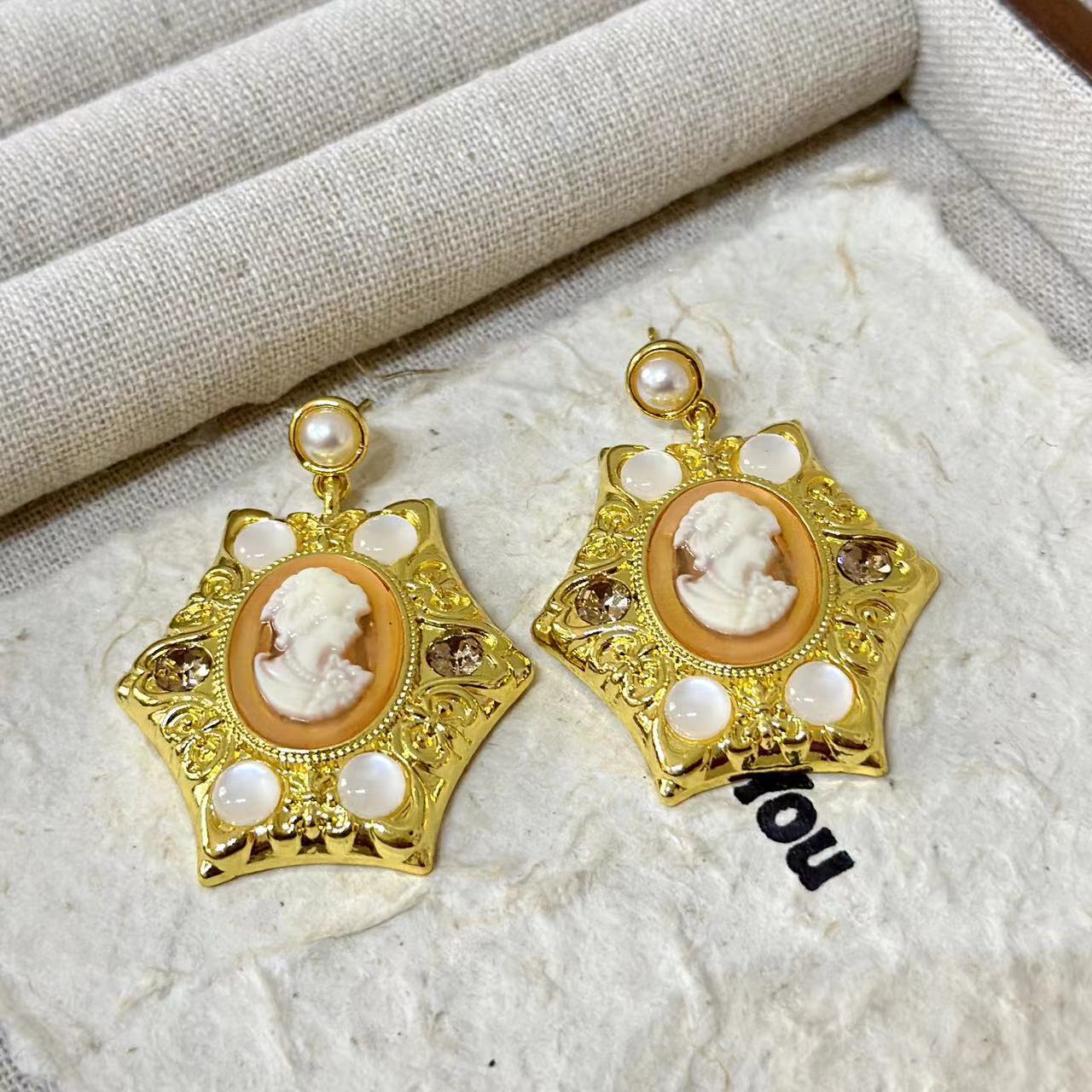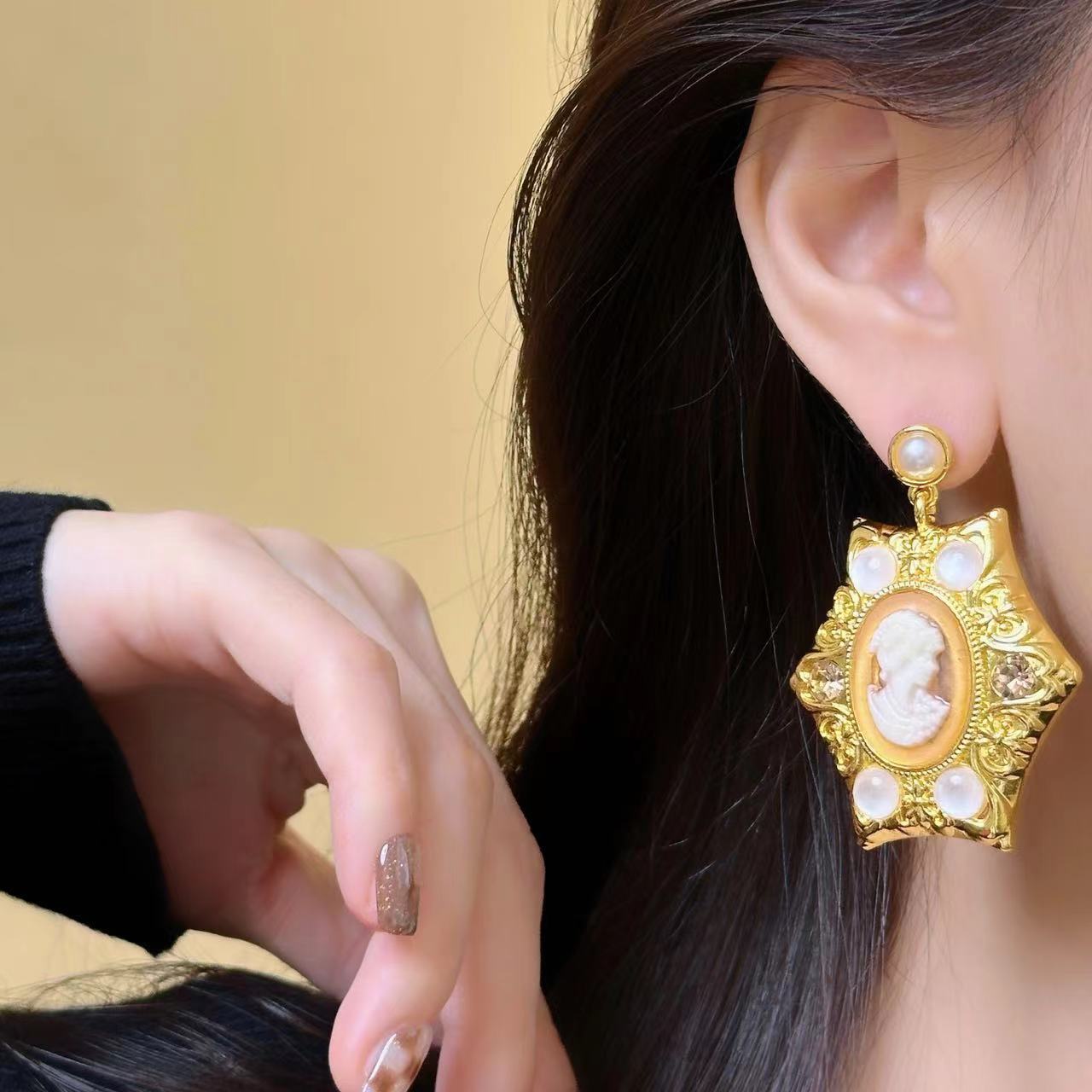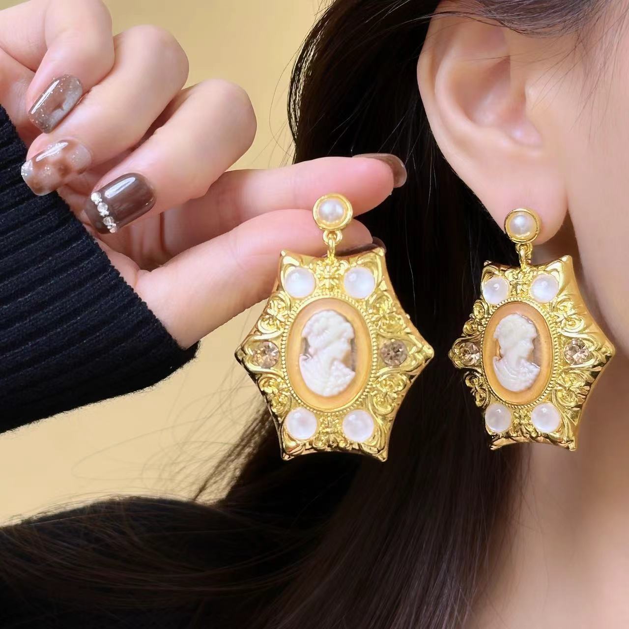 Pendientes geométricos de metal con figura de reina de estilo antiguo medio para mujer, con incrustaciones de ojo de gato y diamantes de imitación de cristal, exagerados.