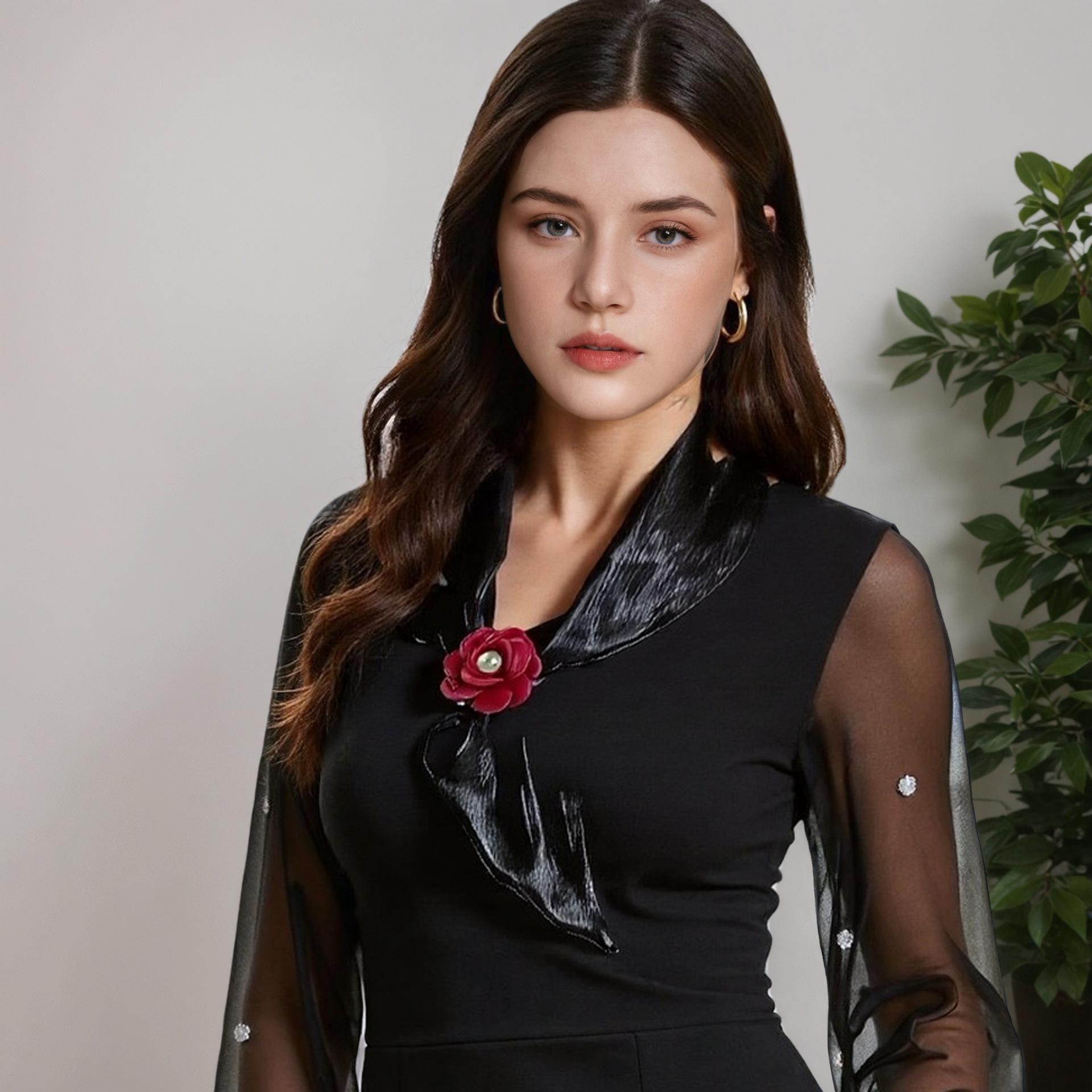 Otoño Nuevo Color Sólido Cuello Decoración de Flores Viaje Moda Elegante Gasa Ligero Suave Bufanda de Mujer