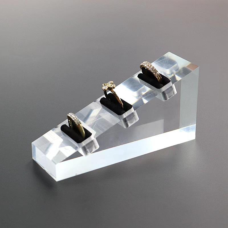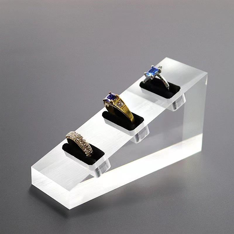 Nombre del producto: Soporte de exhibición de anillos acrílico biselado de 3 posiciones
