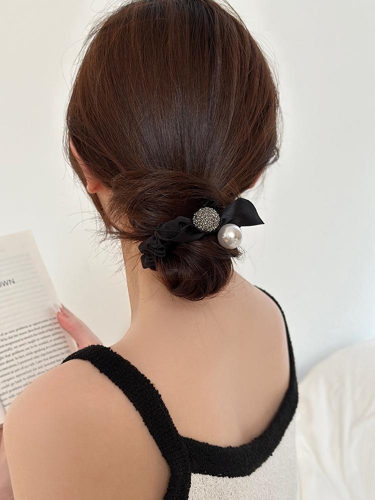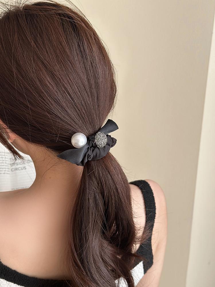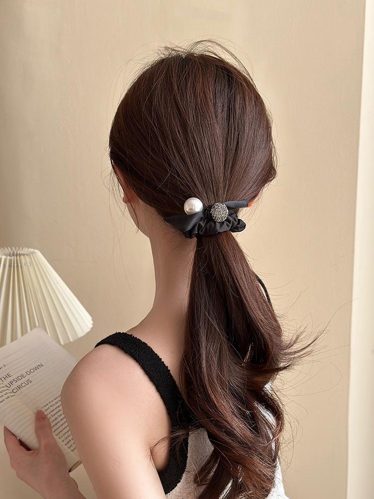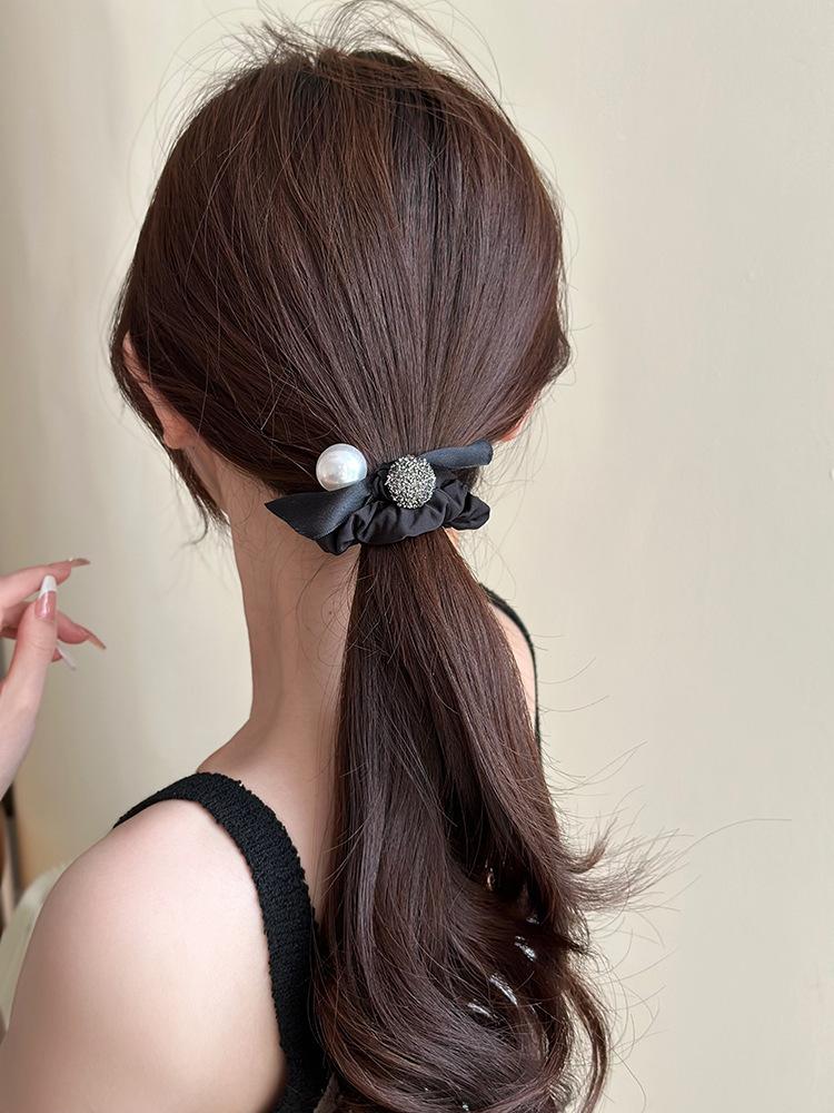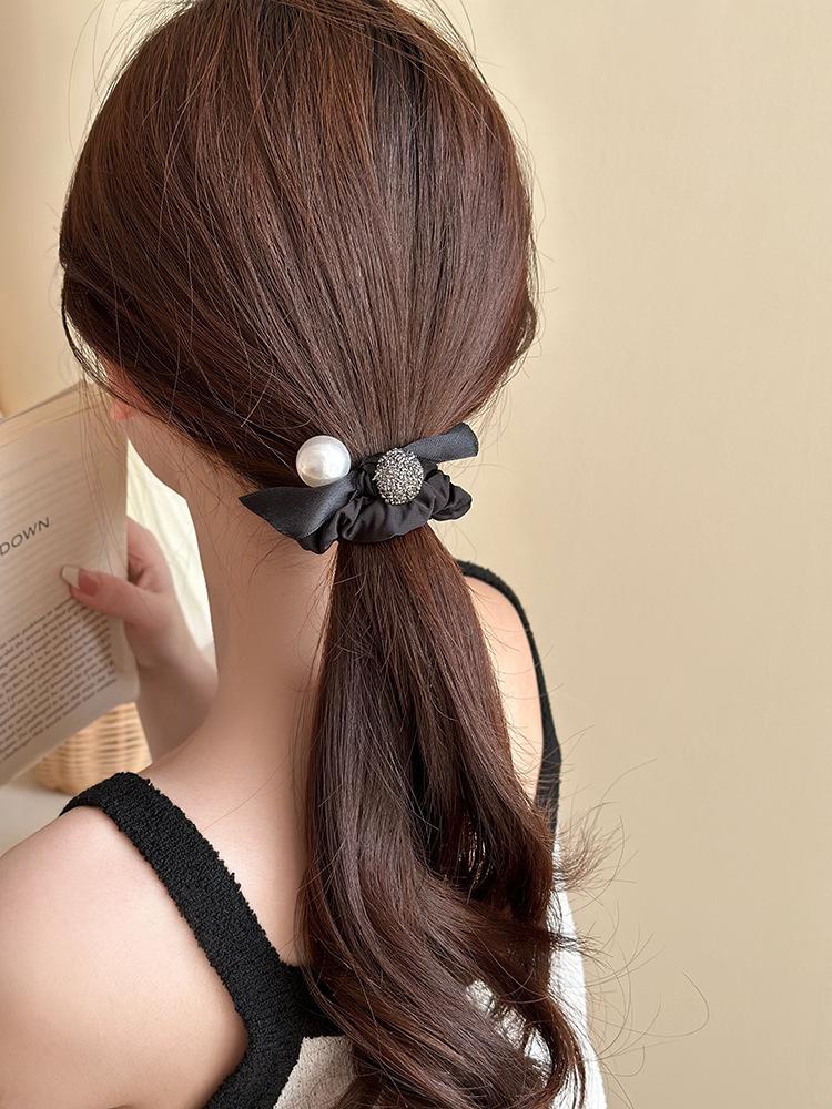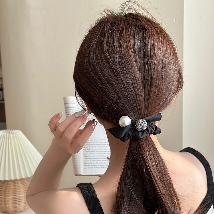 Correa para el cabello con cabeza de bola y perla negra, anillo para el cabello para el intestino grueso, correa para el cabello elegante de alta gama para mujer, correa para el cabello de nuevo estilo