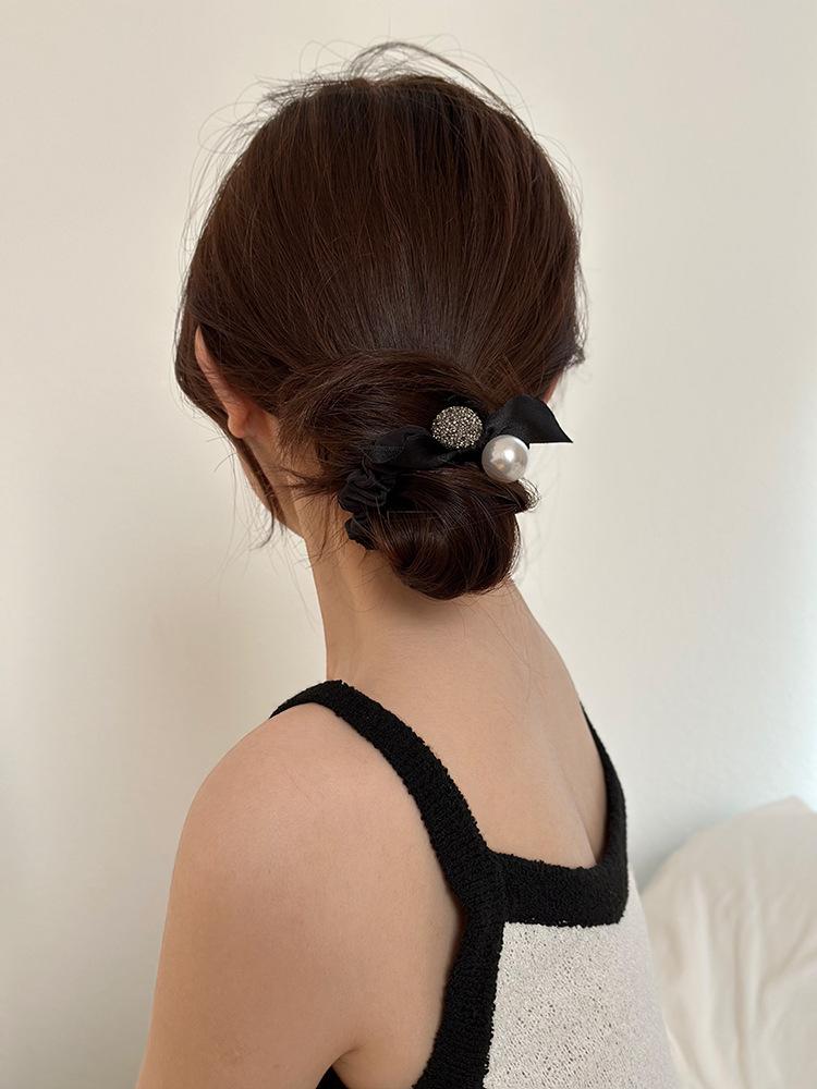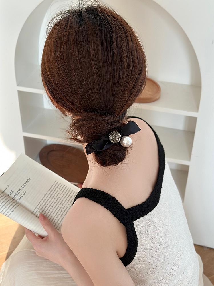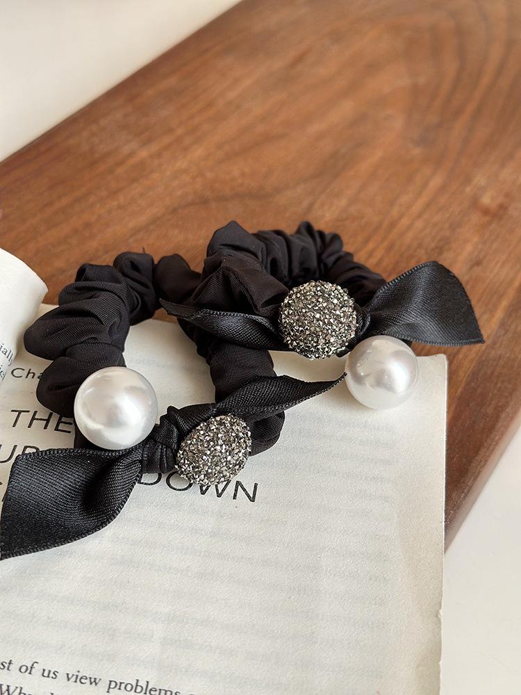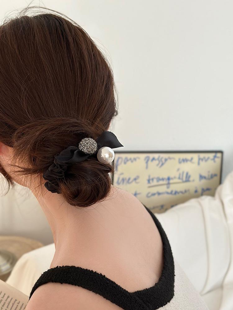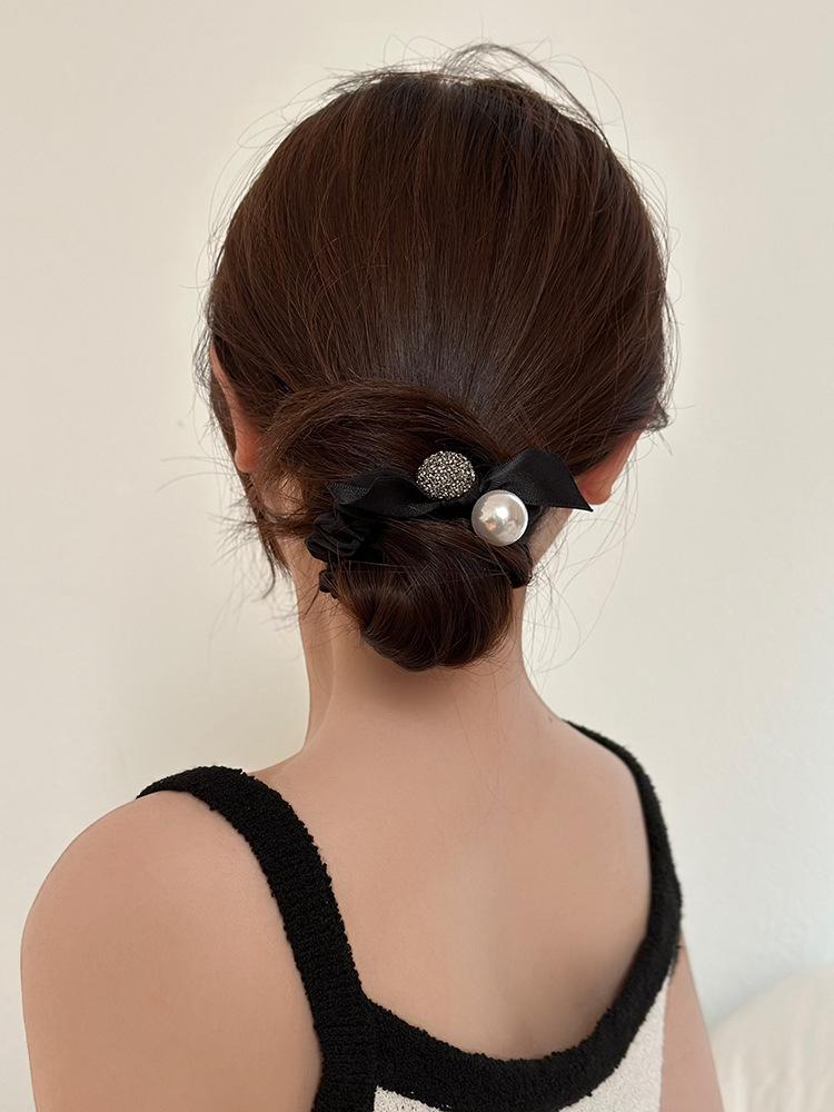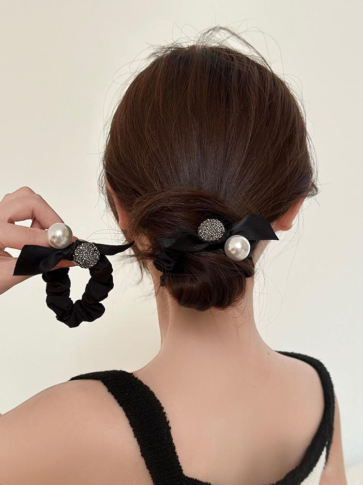 Correa para el cabello con cabeza de bola y perla negra, anillo para el cabello para el intestino grueso, correa para el cabello elegante de alta gama para mujer, correa para el cabello de nuevo estilo
