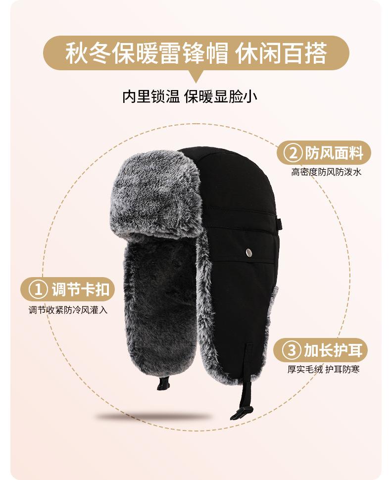 Gorro de invierno para hombre con forro polar, cálido, con protección para los oídos, de algodón grueso y resistente al frío, para ciclismo, resistente al viento, Lei Feng, para mujer