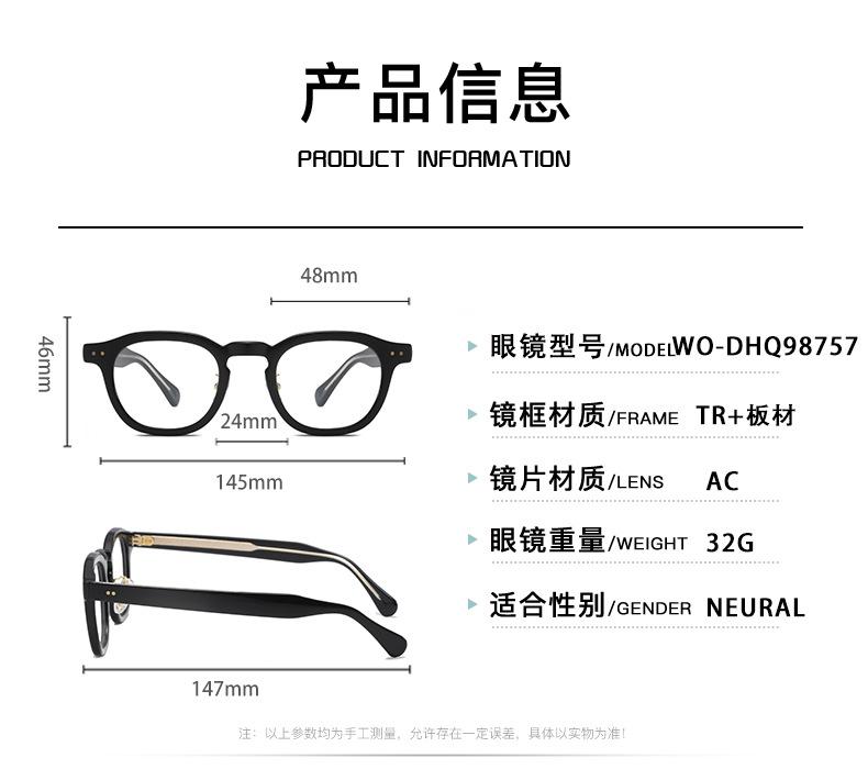 Nuevos Lentes para la Miopía con Textura de Material Estilo Coreano, Luz Anti-Azul para Hombres y Mujeres, Armazón de Lentes Llanos Retro Ins Harajuku