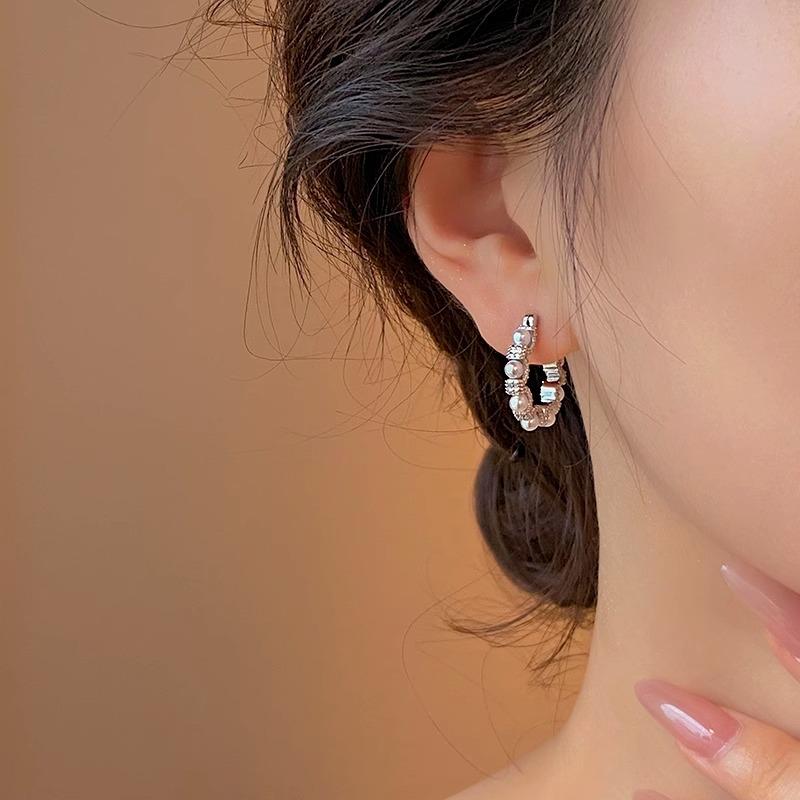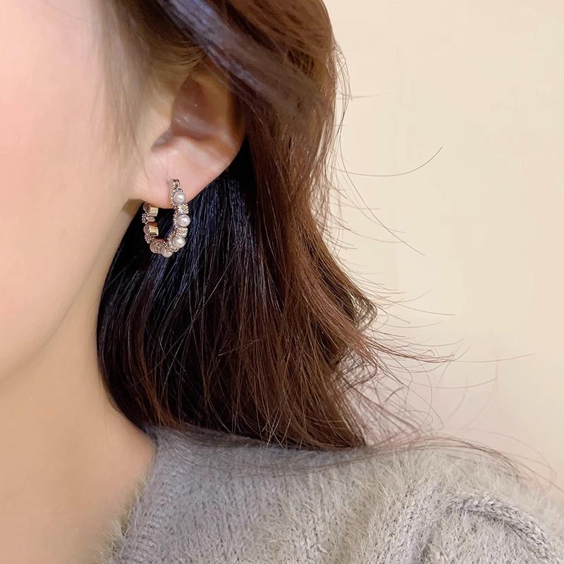 Pendientes de perlas circulares con diseño de nicho, ligeros, de lujo y de alta gama, para mujer, otoño e invierno, pendientes vintage franceses únicos.