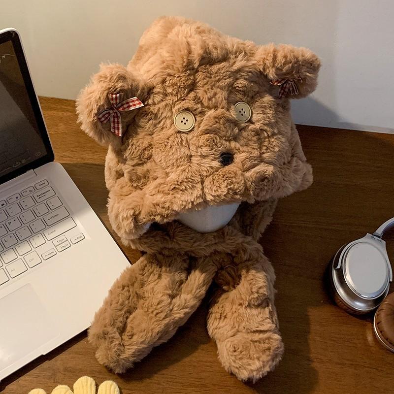 Compra Lindo Gorro de Oso Bufanda Todo en Uno para Mujer Invierno Nuevo Felpa Engrosado Cálido Gorro Lei Feng Ciclismo Protección contra el Frío Protección para las Orejas al por mayor en Joom.pro