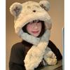 Lindo Gorro de Oso Bufanda Todo en Uno para Mujer Invierno Nuevo Felpa Engrosado Cálido Gorro Lei Feng Ciclismo Protección contra el Frío Protección para las Orejas