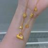 Próspero Trébol de Cuatro Hojas Borla Cierre de Candado Collar Bolso Dorado para Mujer Estilo Étnico de Alta Gama Cadena de una Pieza con Cierre Seguro