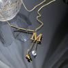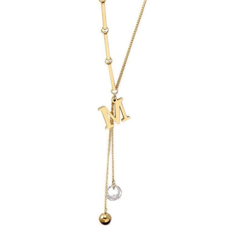 81112 letter diamond tassel necklace gold