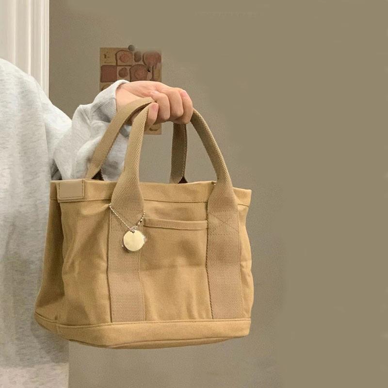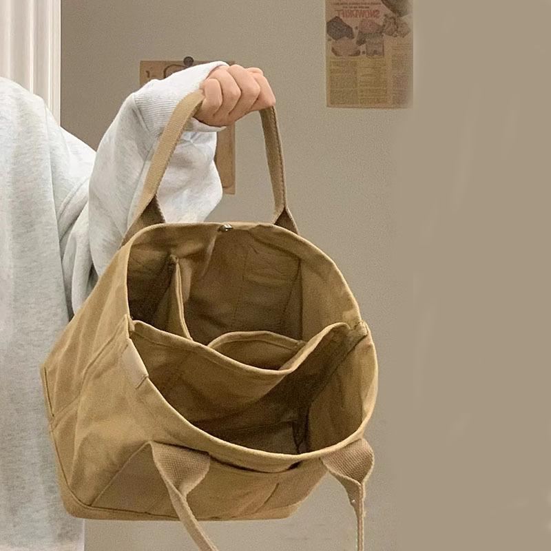 Bolsa de Lona Simple de Gran Capacidad Estilo Coreano Popular en Internet Ligera Color Sólido Hombro Bolso de Mujer Casual Vintage Bolsa de Compras Bolso de Mano