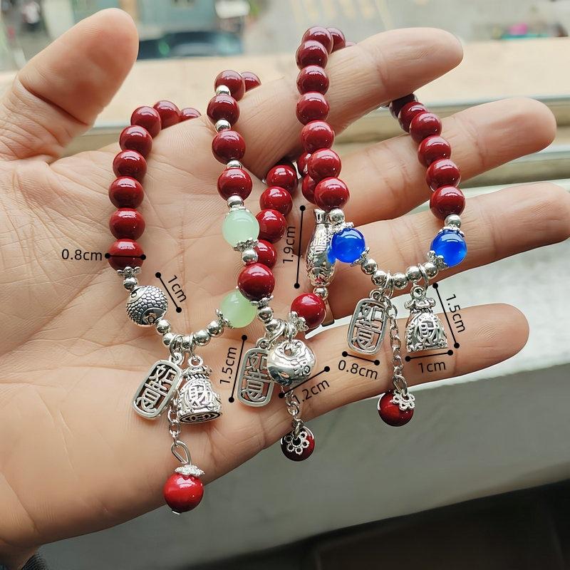 Fish bag cinnabar string, Fish Lock Cinnabar Bracelet, Blue Cat Eye Bag Cinnabar Handstring