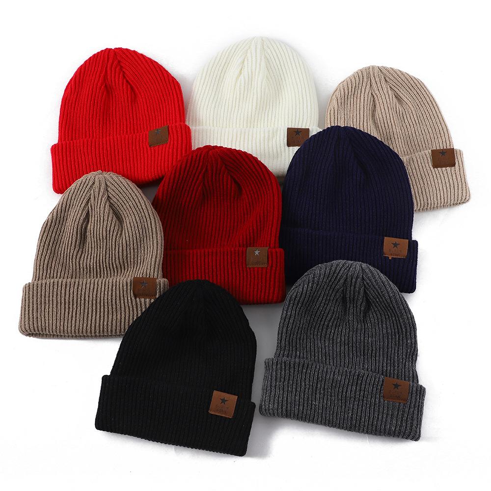 Nuevo gorro de punto cálido y sencillo para otoño e invierno, combinable con todo, estilo informal grueso, con etiquetado para hombres y mujeres, gorro frío.