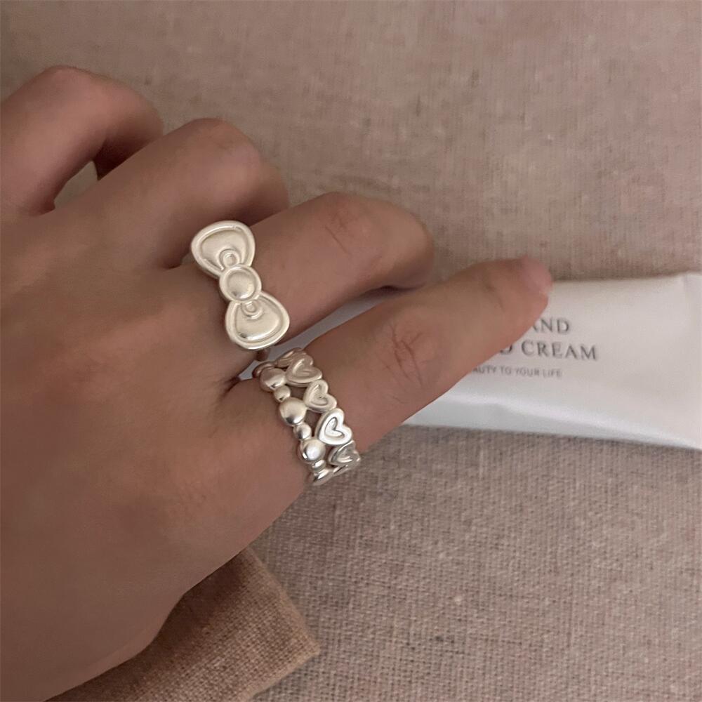 Anillo de corazón con lazo de estilo dulce y fresco, versión ancha, diseño nicho, anillo abierto ajustable, apilable, anillo liso de plata para mujer