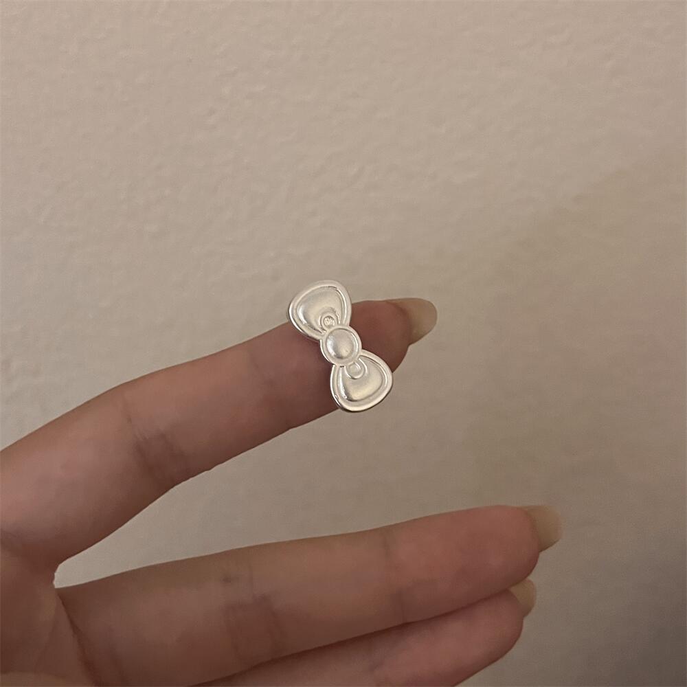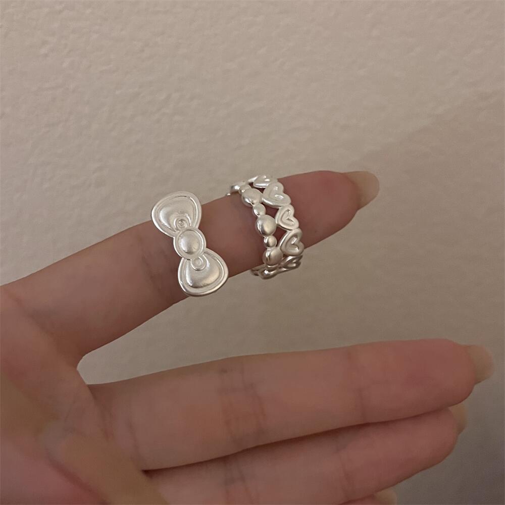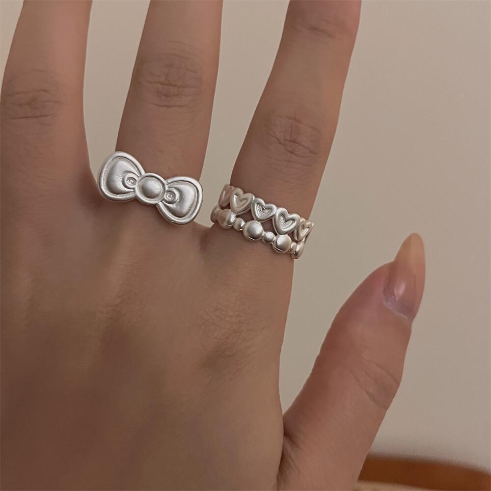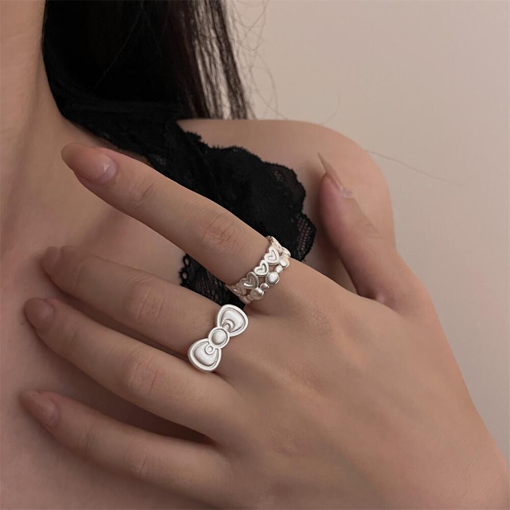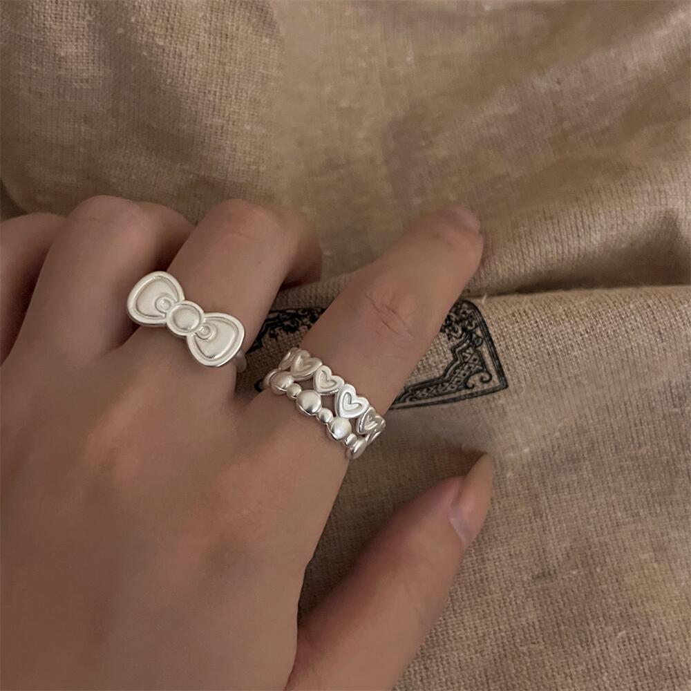 Anillo de plata con lazo de amor para mujer, diseño de nicho, anillo de dedo con apertura de doble capa, estilo frío, anillo simple que combina con todo.