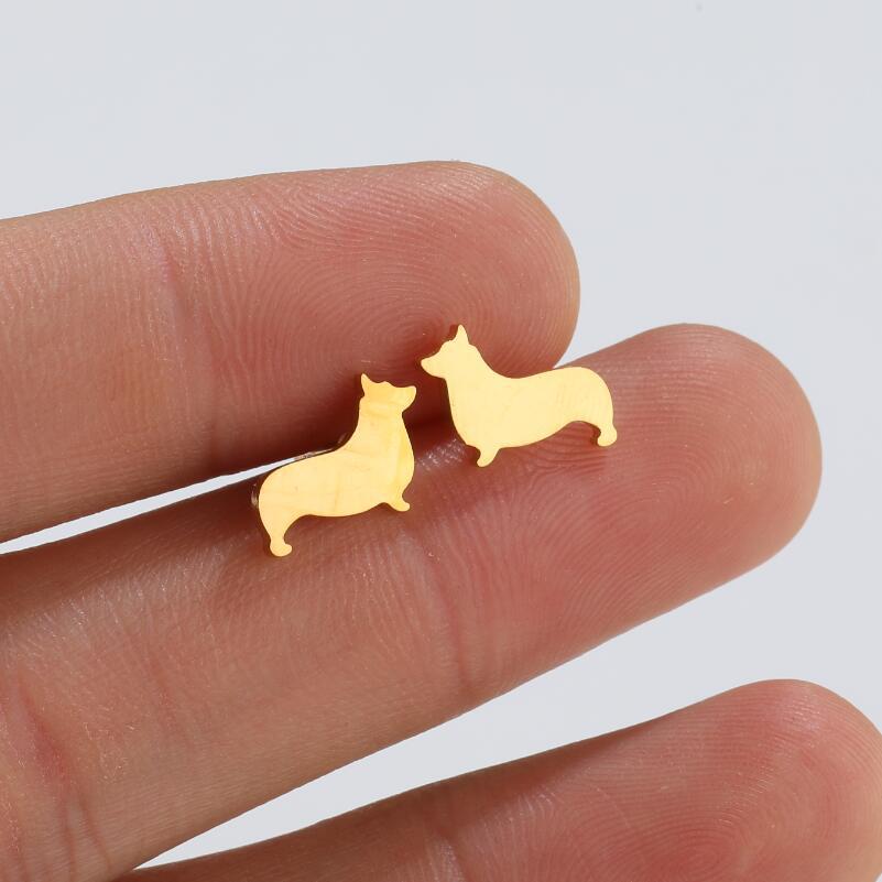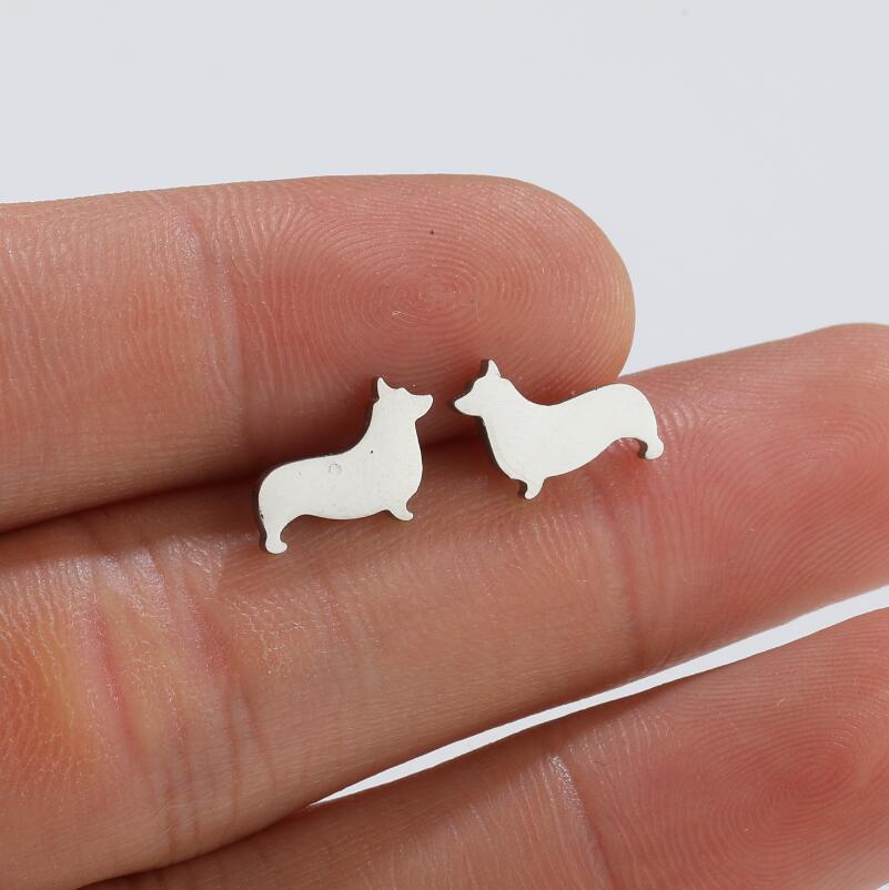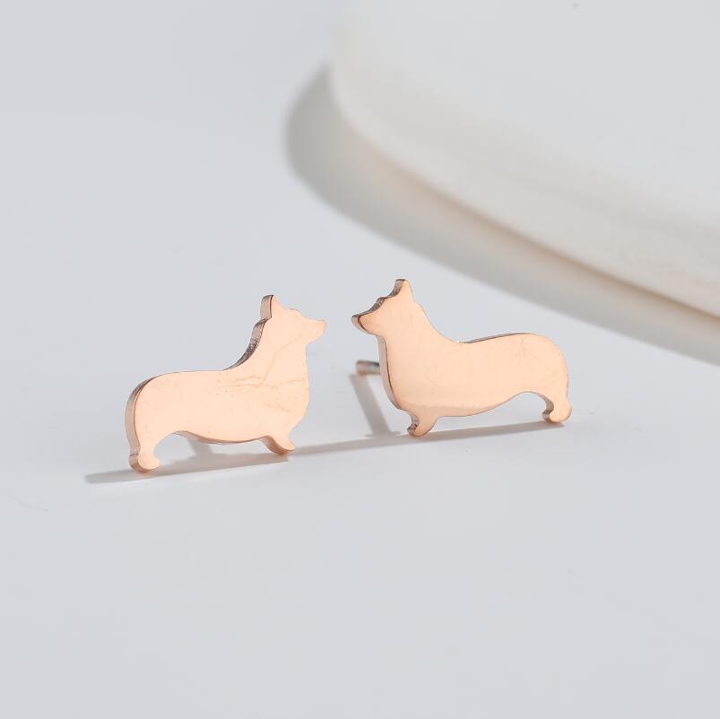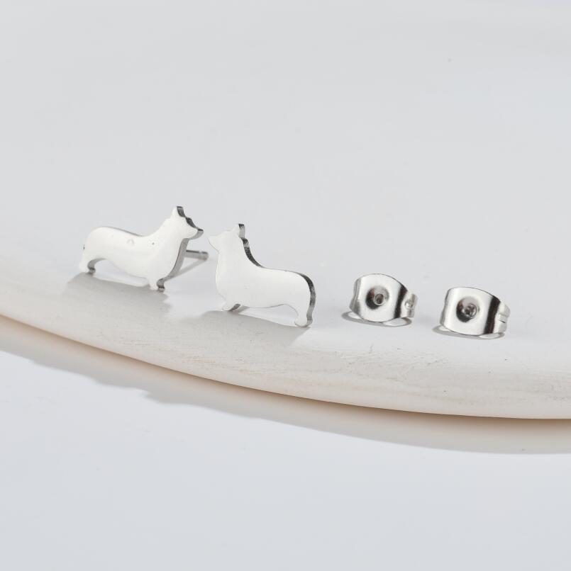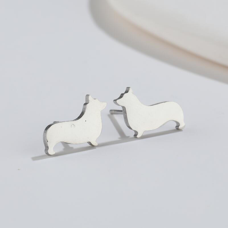 Versión coreana de los nuevos aretes de cachorro lindo temperamento femenino acero inoxidable perro salchicha animal aretes fabricantes en stock al por mayor