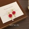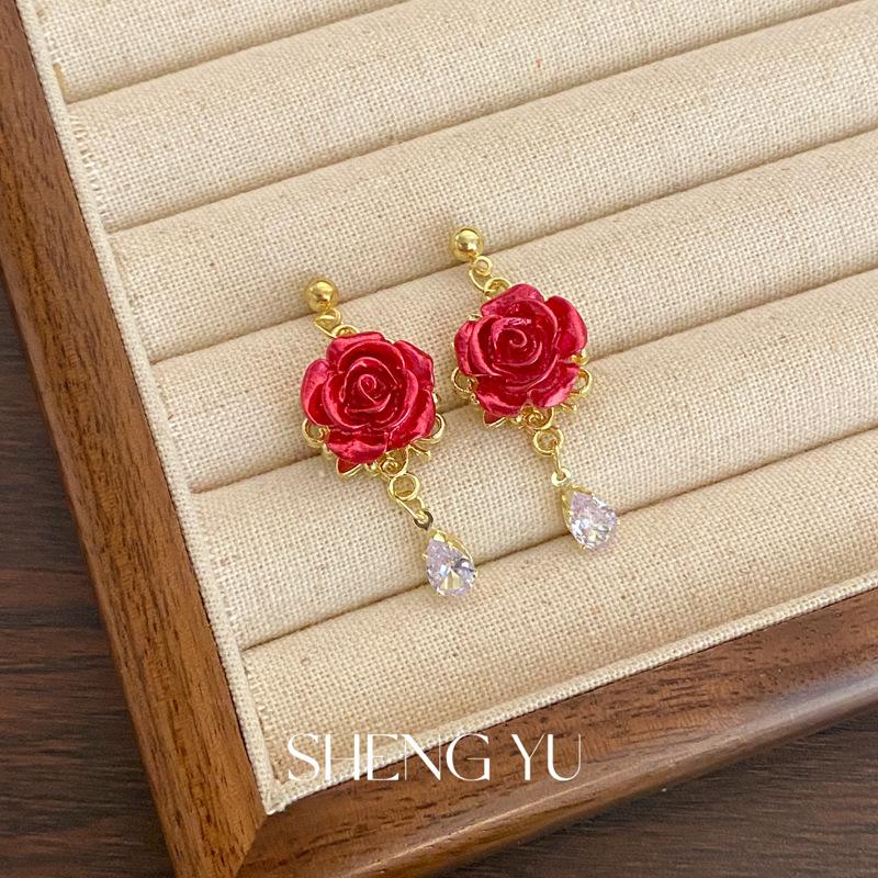 Pendientes colgantes vintage de lujo con forma de rosa roja y diseño de nicho, estilo cortesano, elegantes pendientes de corazón para mujer