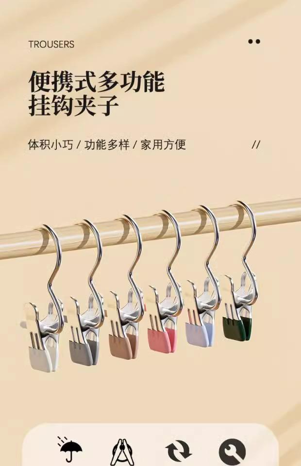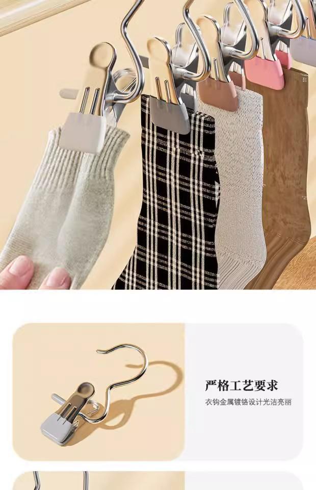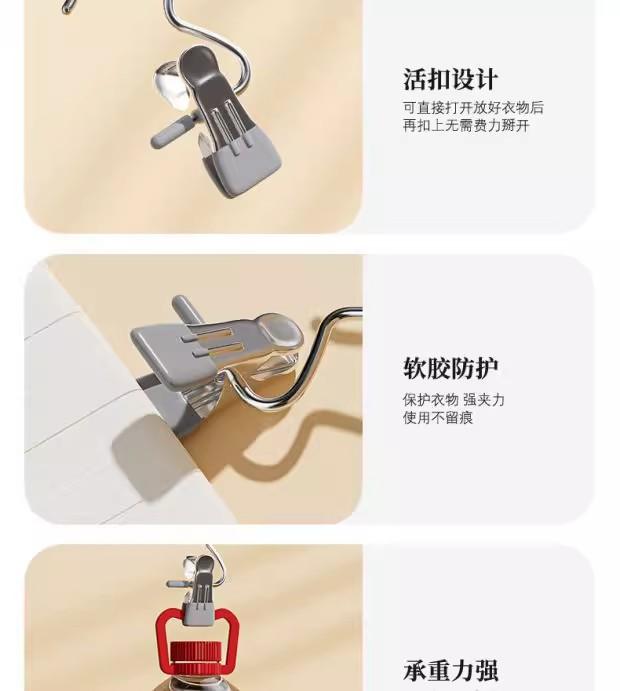 Pinza de ropa de acero inoxidable sin rastro, con tres pinzas, pegamento simple y doble, multifuncional, con gancho, para el hogar, para sombreros, pantalones, bufandas