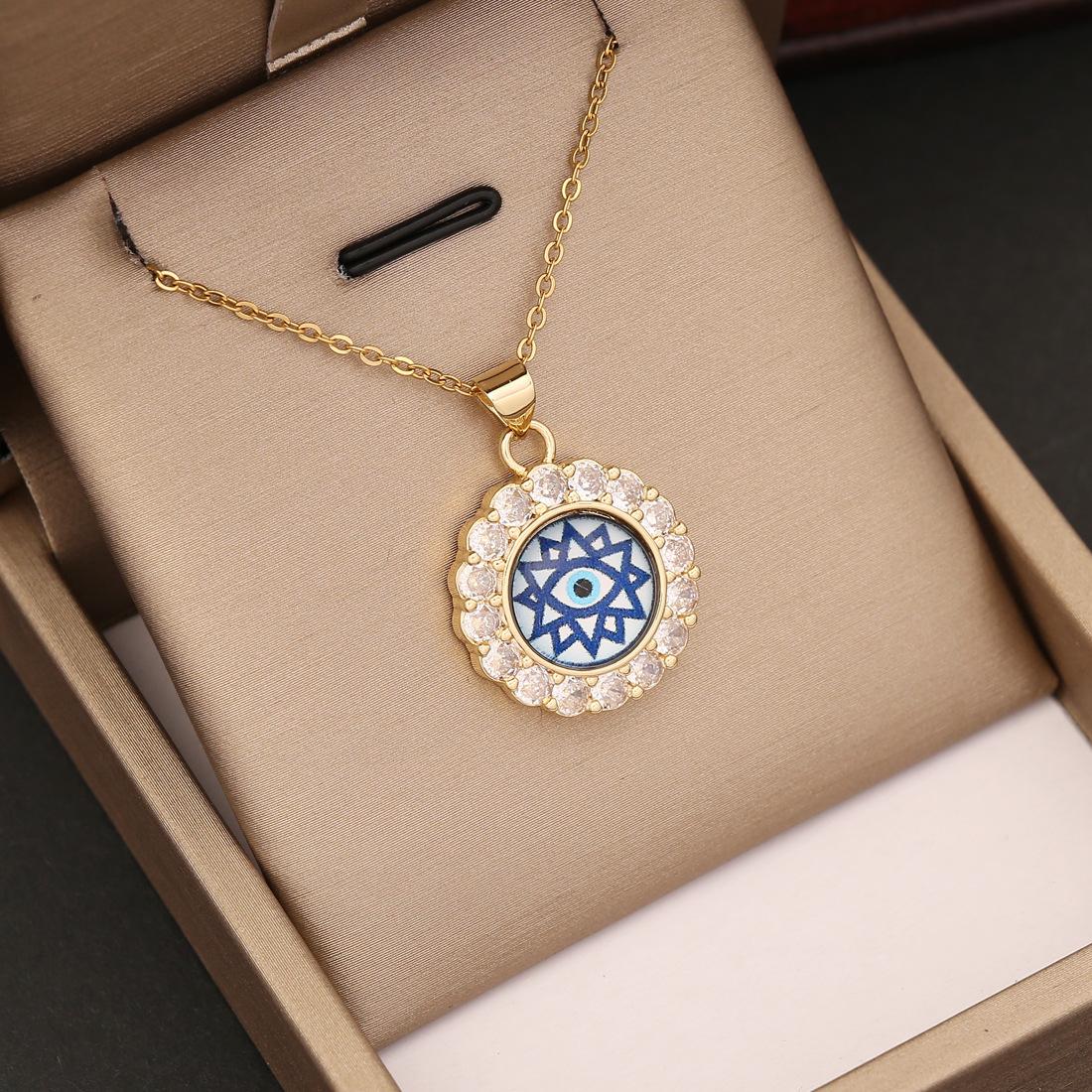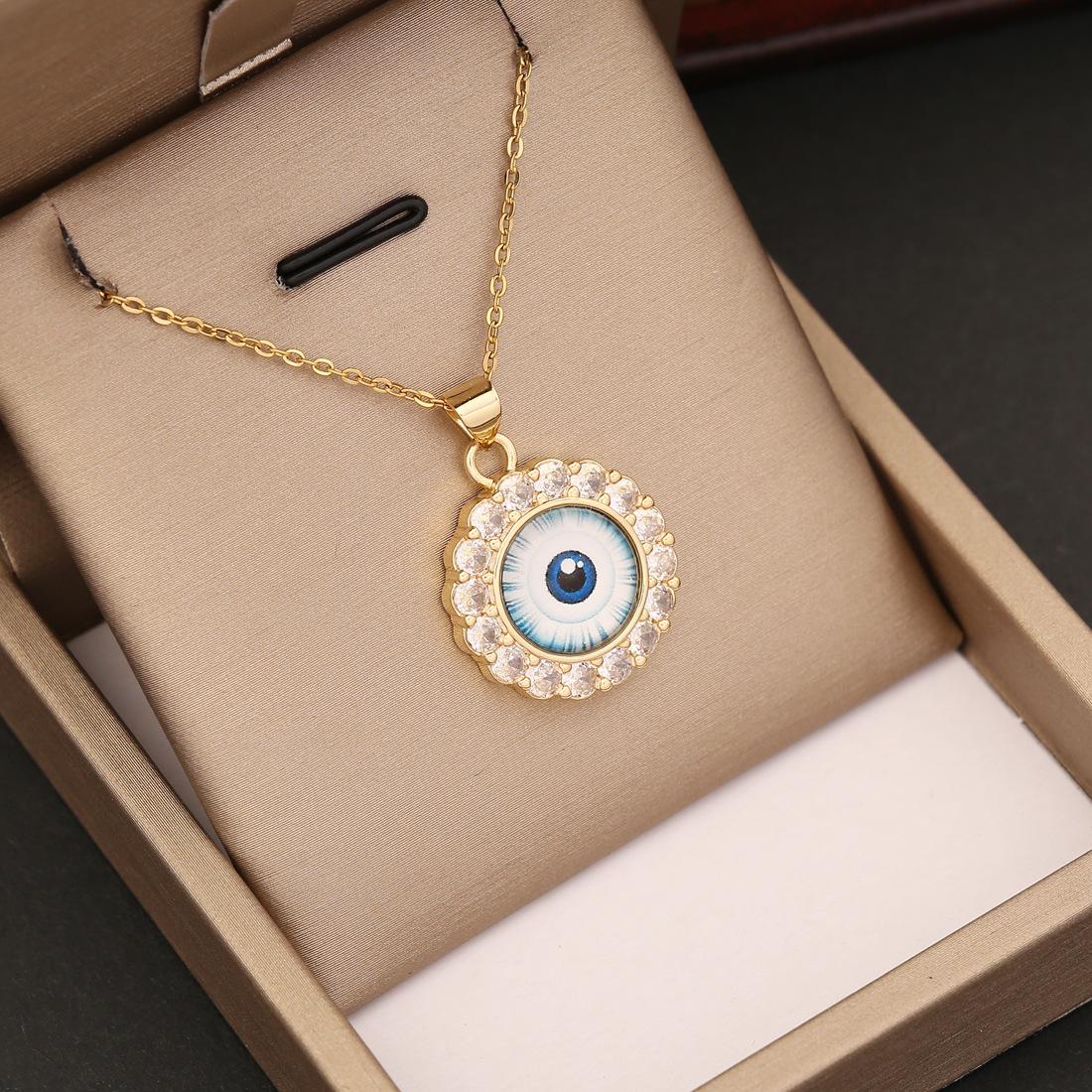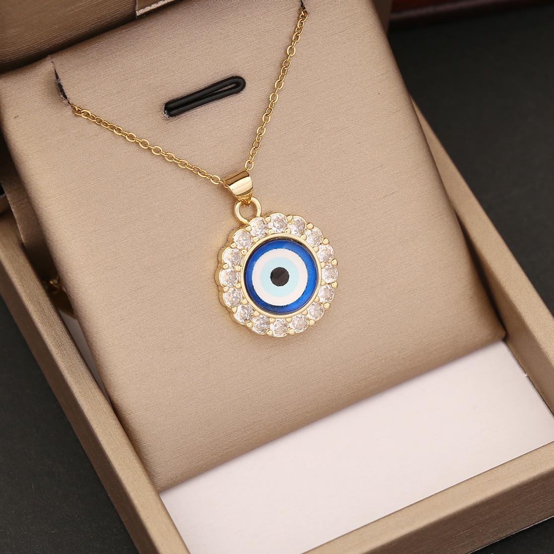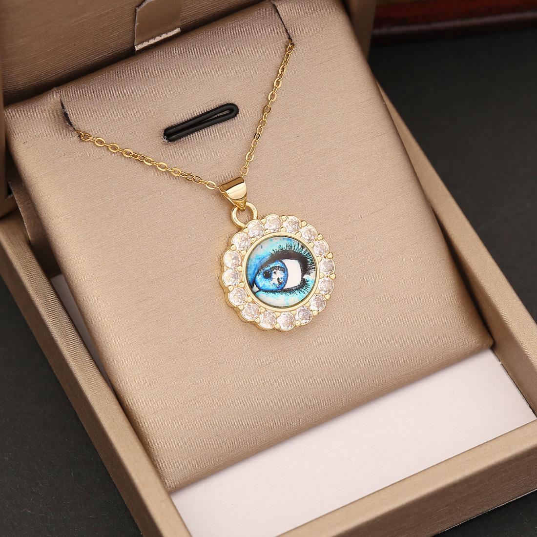 Collar de cobre con microincrustaciones de circonitas, colgante de ojo personalizado, joyería transfronteriza, N1108