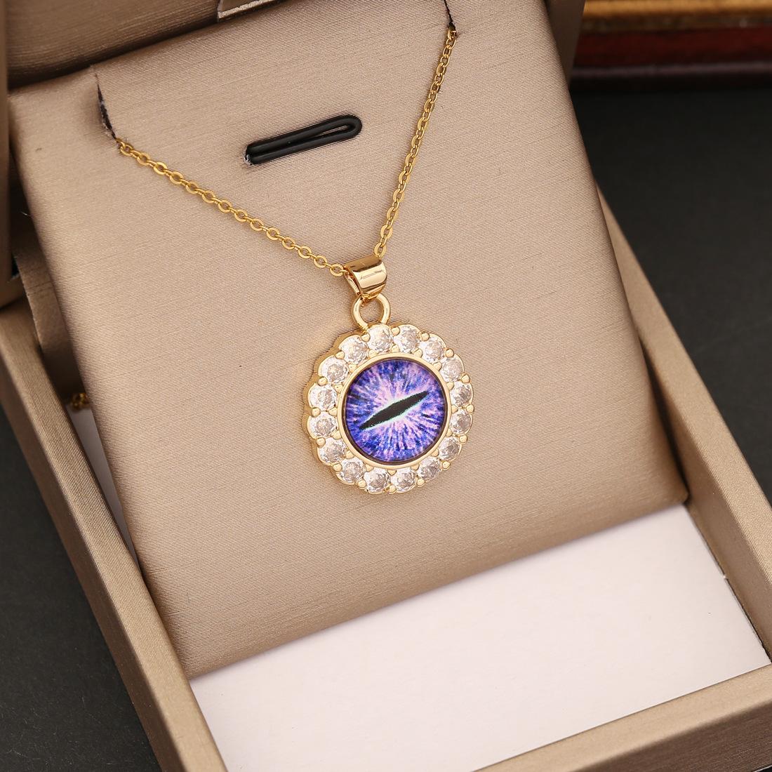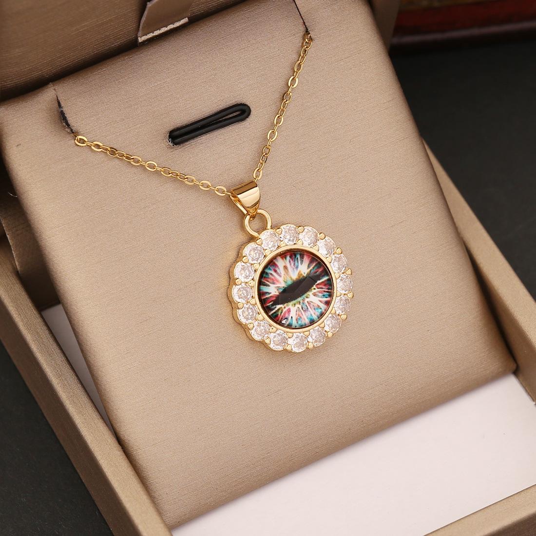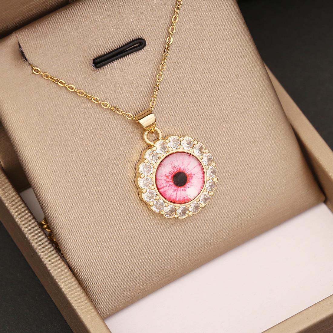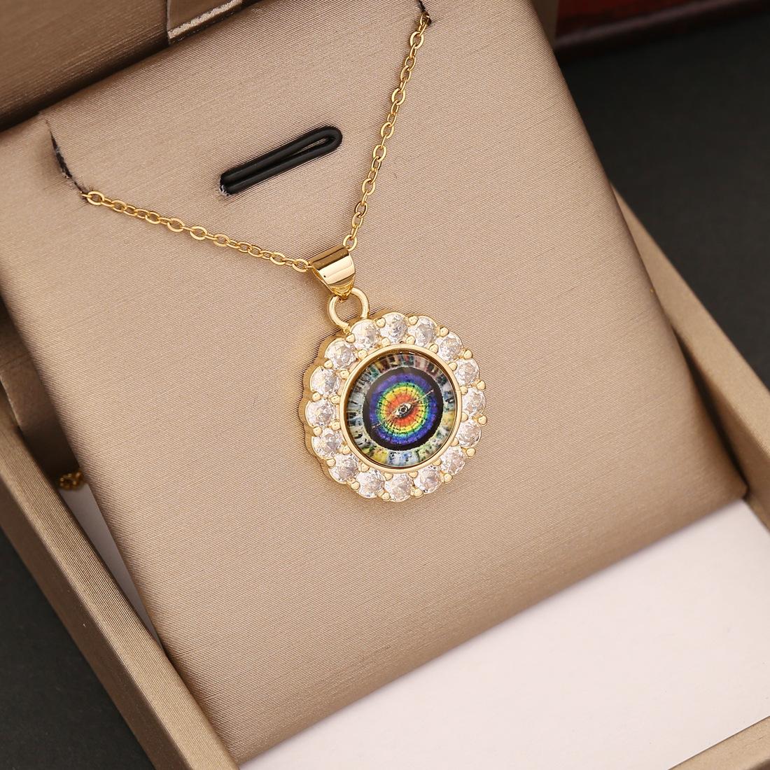 Collar de cobre con microincrustaciones de circonitas, colgante de ojo personalizado, joyería transfronteriza, N1108