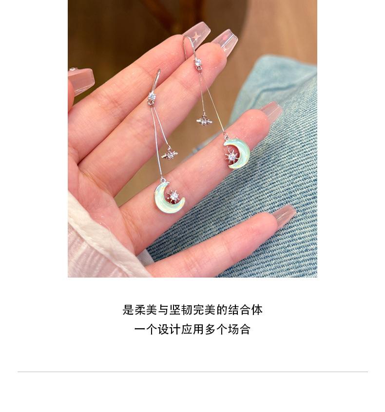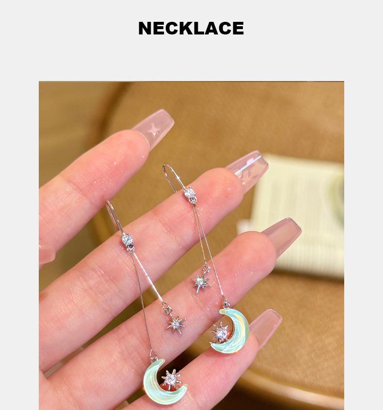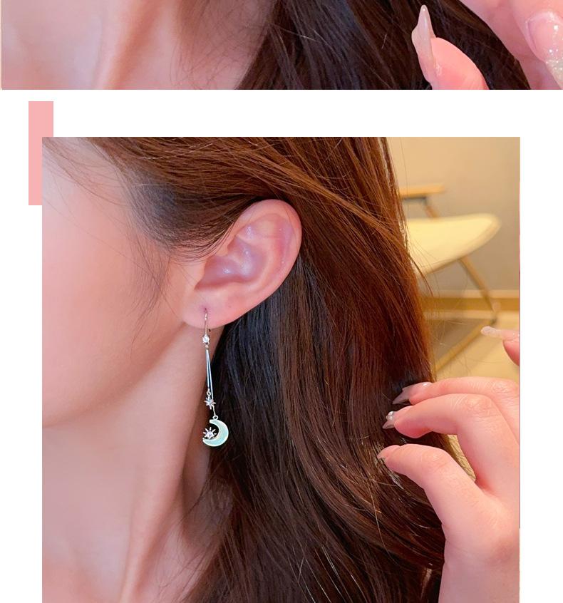 Pendientes de luna con diseño geométrico de aguja plateada para mujer, de moda, sencillos, combinables, ligeros, de lujo, elegantes, con bordes cruzados.