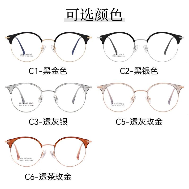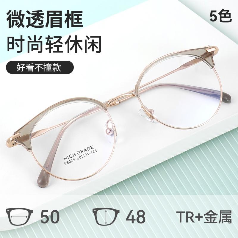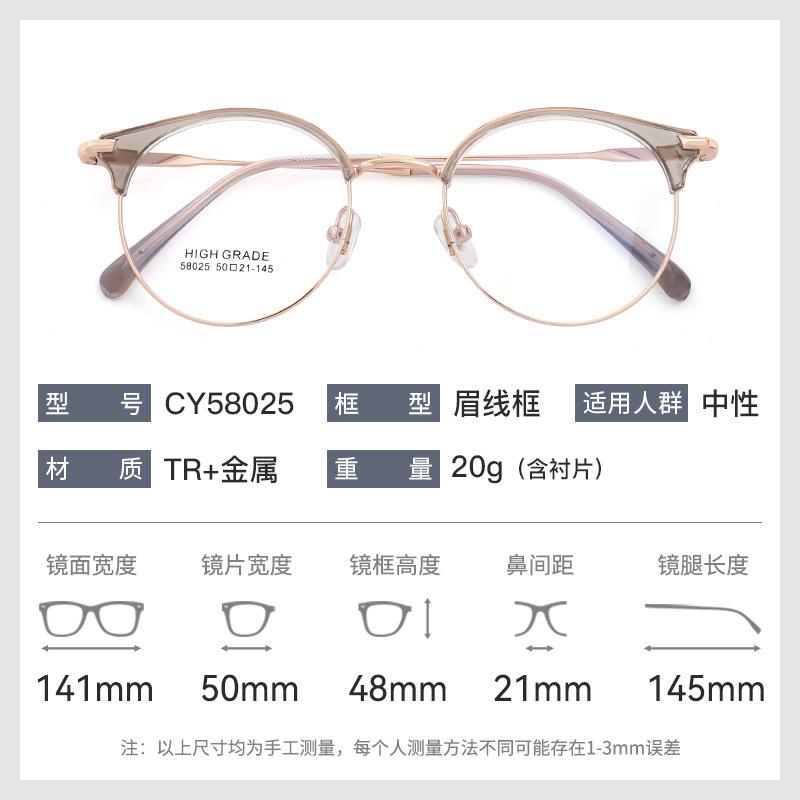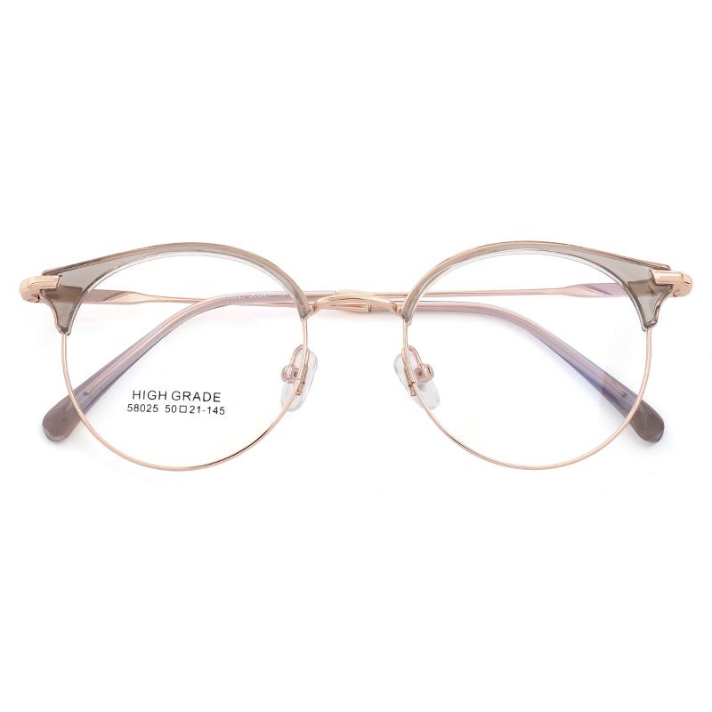 Nuevos Lentes de Mujer con Montura Redonda y Montura Sencilla para Miopía, Lentes de Media Montura Color Té CY58025, Montura Vintage de Ceja