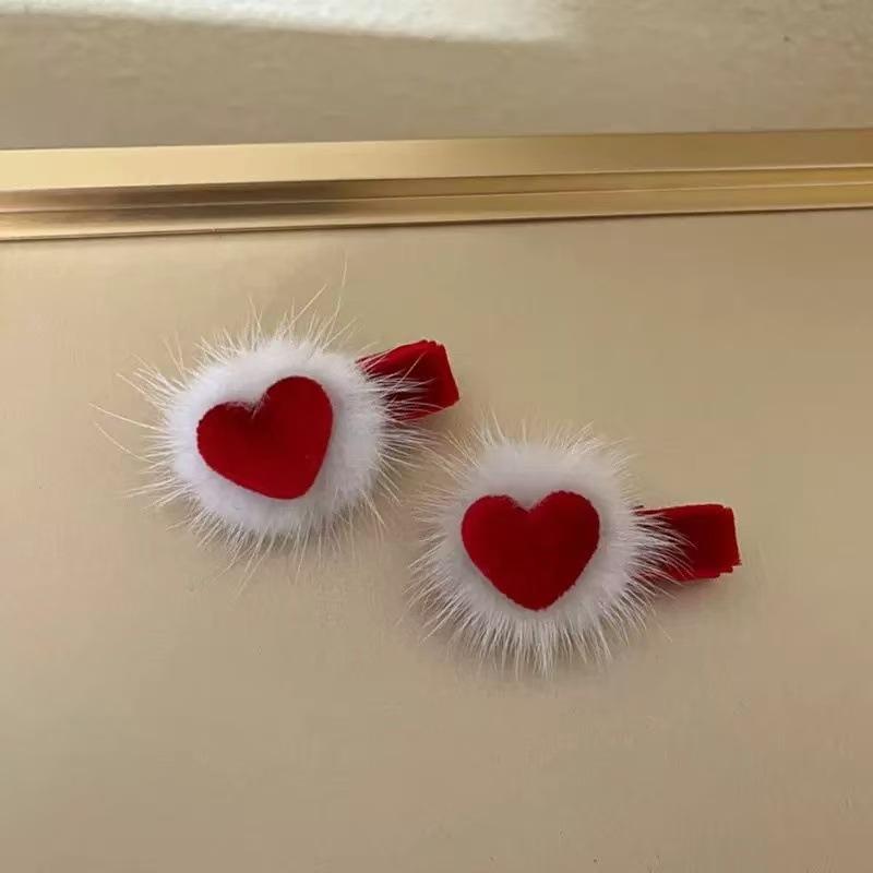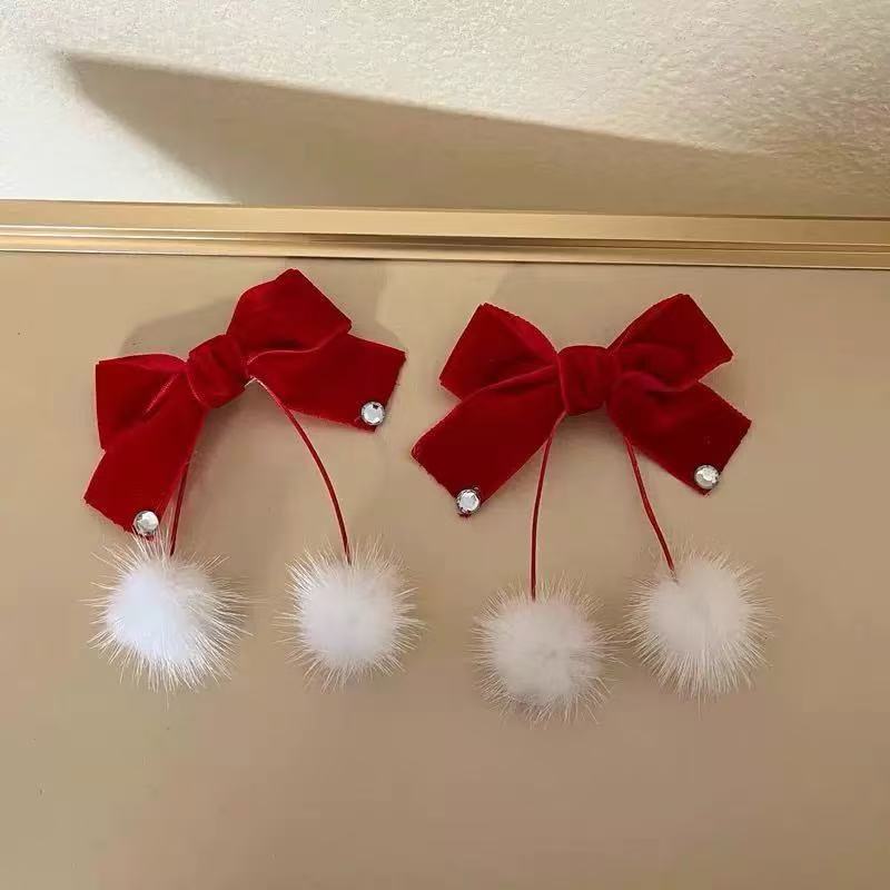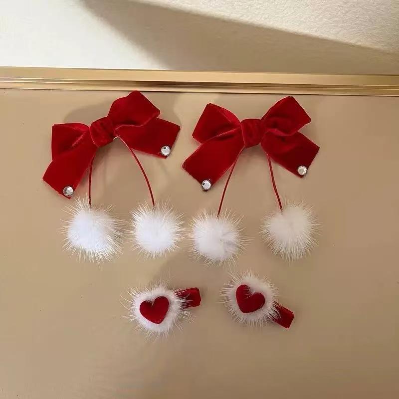 Moño Rojo de Terciopelo Bola de Cabello Pasador Japonés y Coreano Dulce Linda Niña Clip Doble Cola de Caballo Elegantes Accesorios para el Cabello de Año Nuevo